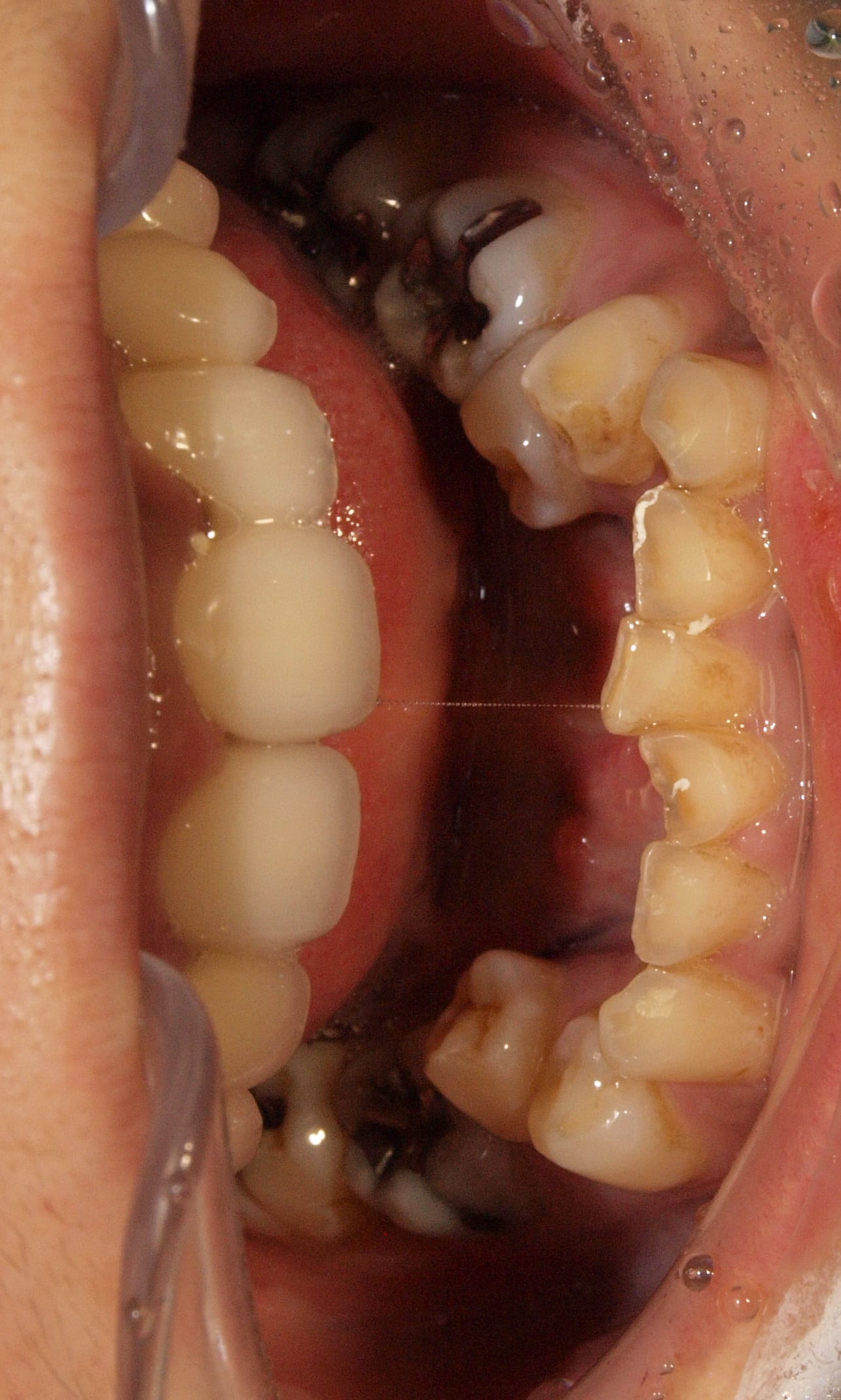 C'est une eventualité mais je ne pense pas car il n'y a jamais eu d'abces a cet endroit ou de douleur en 5 ans. La patiente etait tellement deprimée par ce bridge qu'elle le portait en le maintenant avec la langue en permanence, totalement décollé.