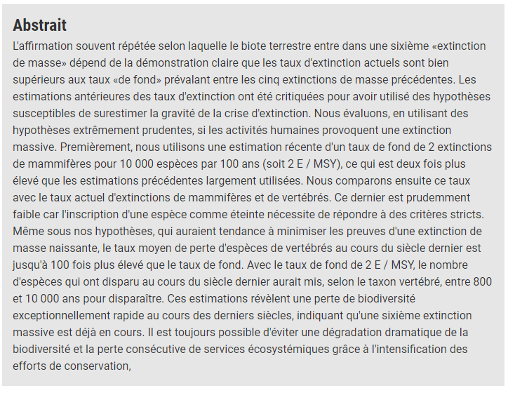 > la 6eme extinction de masse... mais c'est vrai, c'est pas si grave que ca en fait...