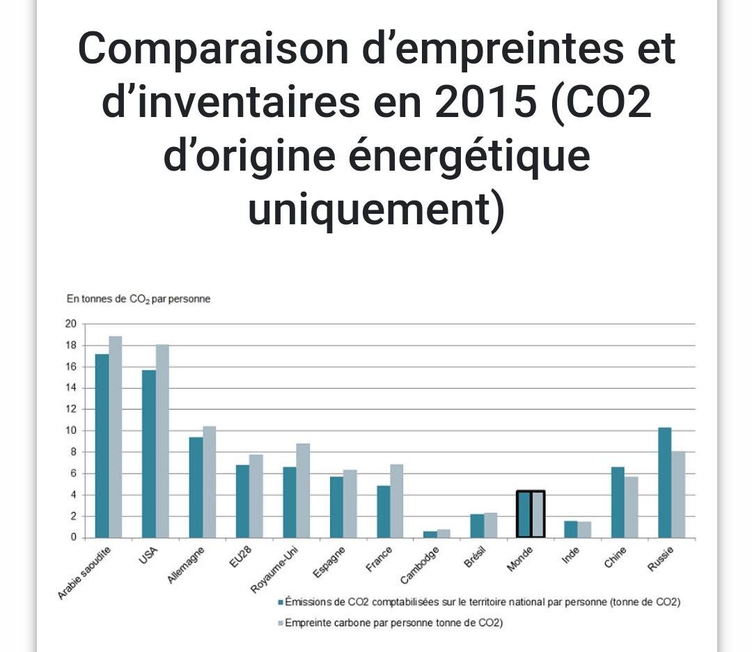 Je te le répète, enlèves les émissions dues a la production industrielle asiatique destinée a la consommation occidentale (qu'il faut attribuer à l'occident, ce qui alourdit sensiblement nos émissions mais n'est hélas jamais comptabilisé) et regarde le nombre d'humains qui émettent beaucoup moins de CO2 que le francais lambda.