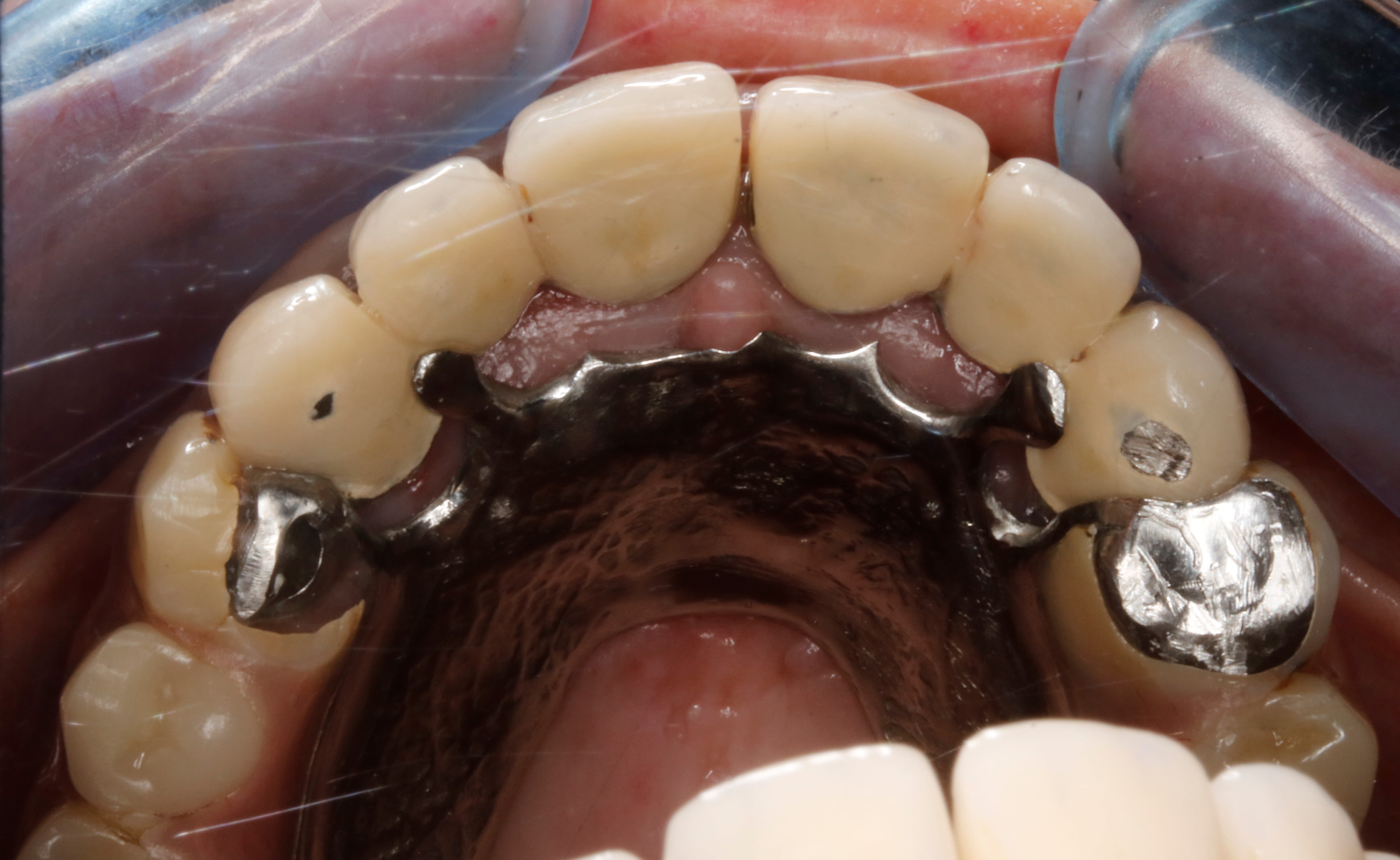 " Je ne vois pas l'intrados mais il me semble que tu bloques la suture inter incisive