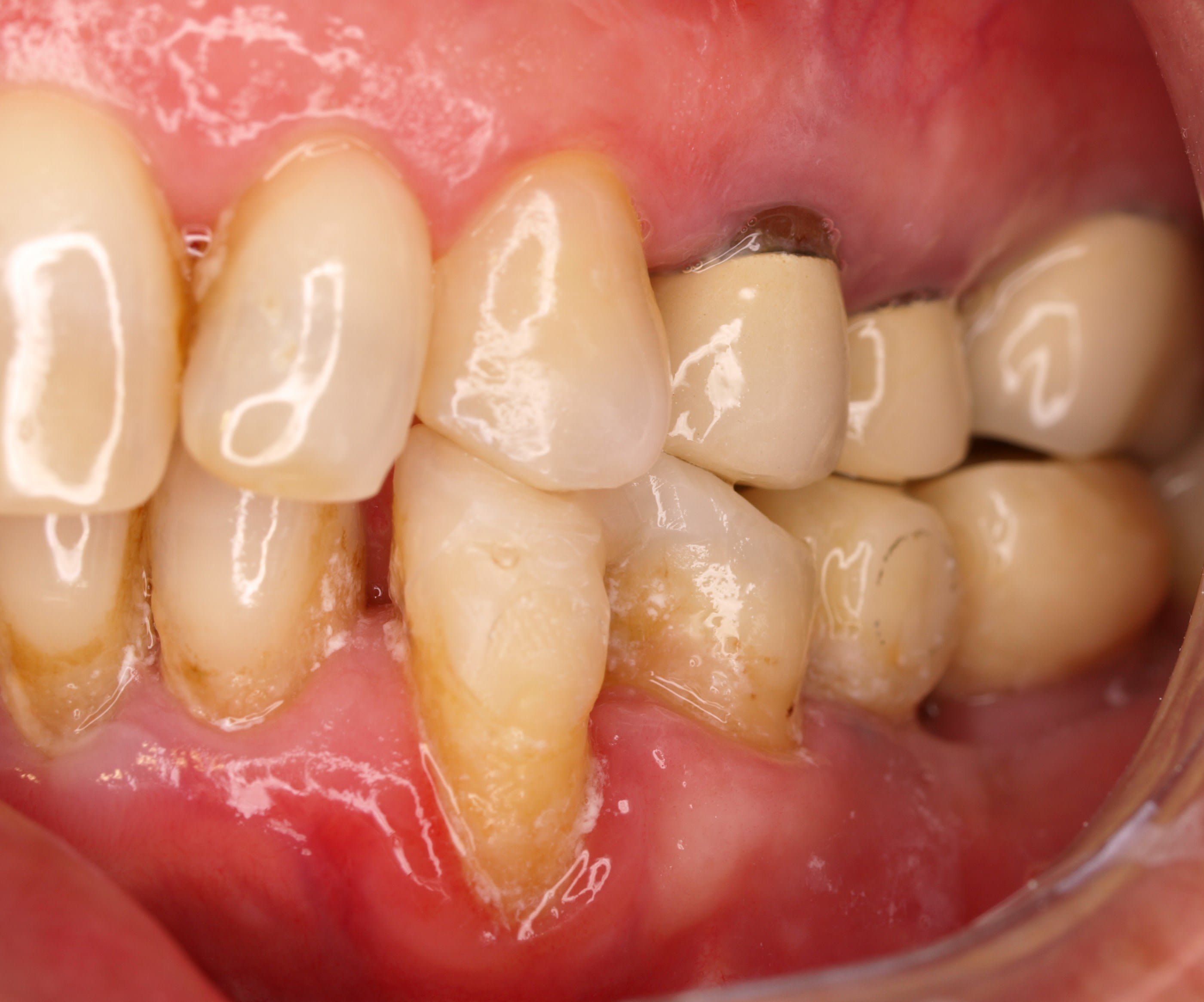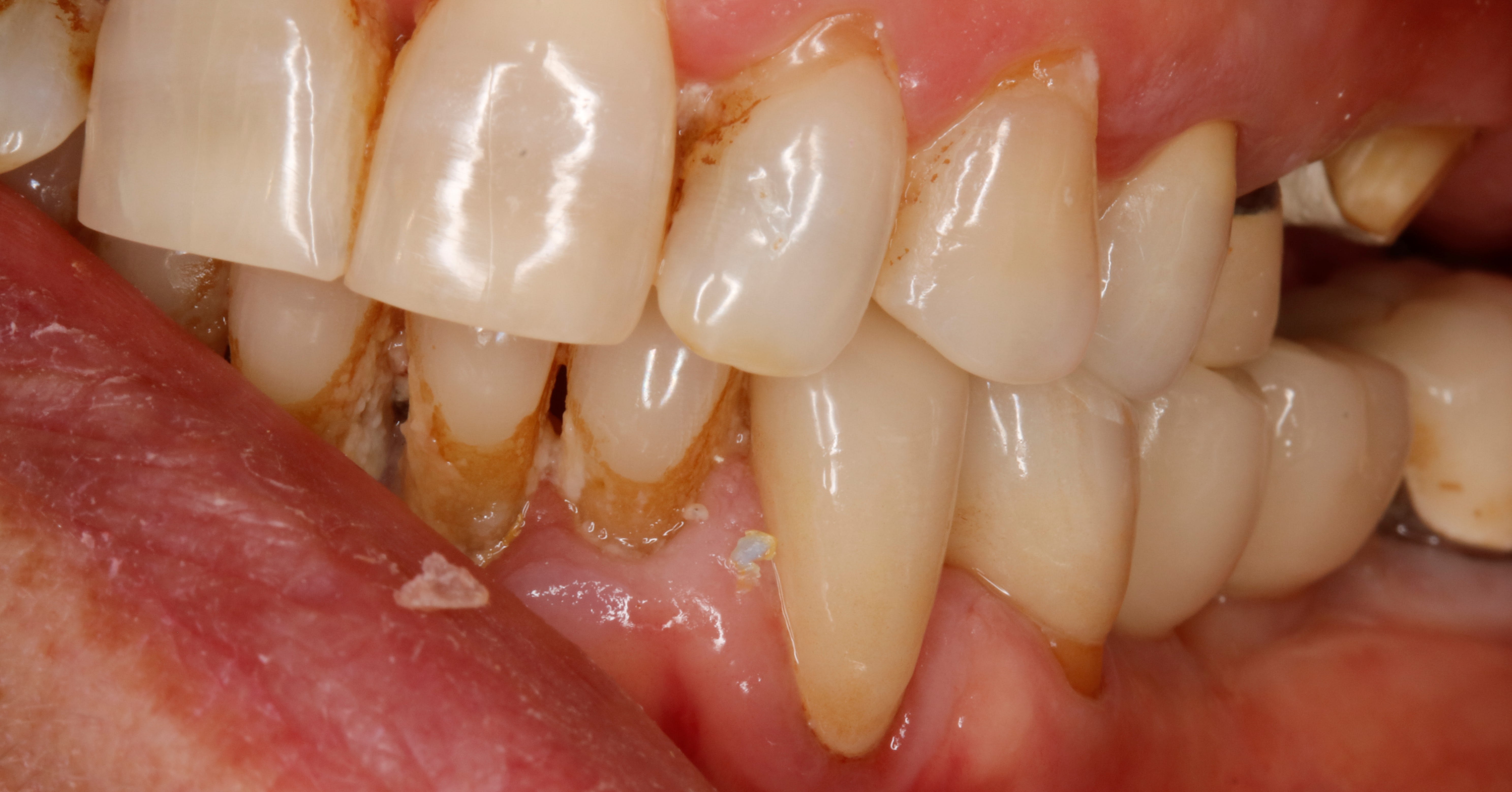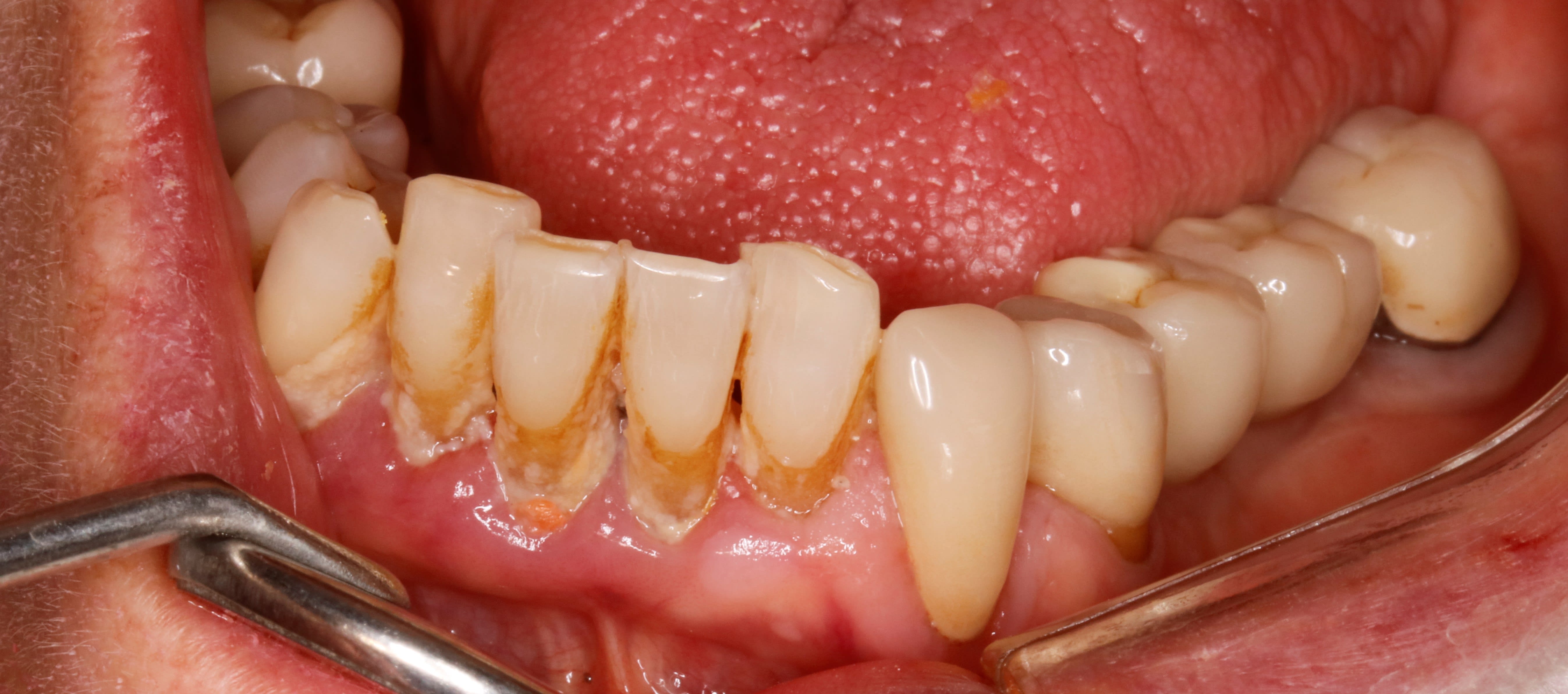 pour le temps c est assez rapide , je te confirmerais ça demain en regardant les dates des photos . je dirais 3 / 4 mois . avec un état paro initial défavorable ça va vite :-) .
