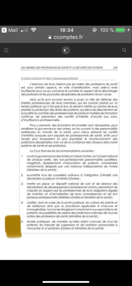 La Cour des comptes dans l'intérêt des patients a bien rappelé la nécessité de rendre publique les condamnations ordinales.