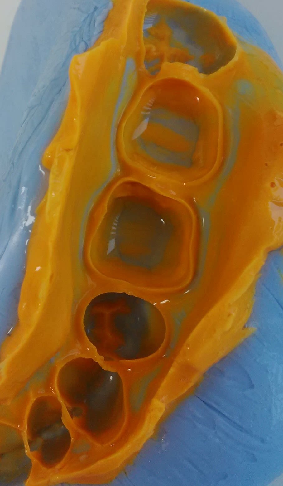 Heu sinon si tu as du tirage sur des empreintes sur des dents terminales il suffit d'emboxer ton prote-empreinte avec de la pâte de kerr au niveau du postérieur pour éviter que ton silicone se barre en arrière.