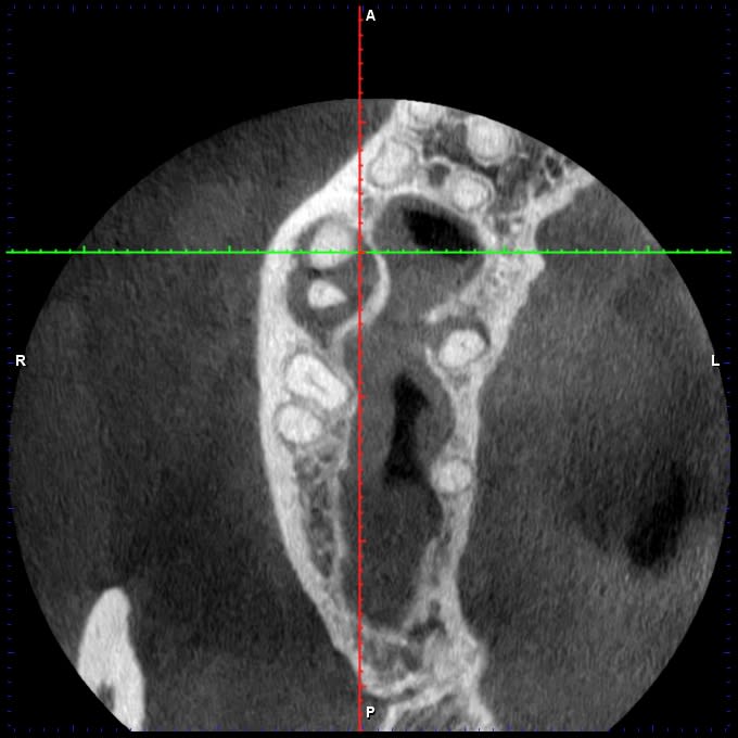 Je fait une cbct: 4 canaux, lésion infectieuse sur chaque racine et surtout, ce qui ressemble à une résorption interne de la racine palatine.