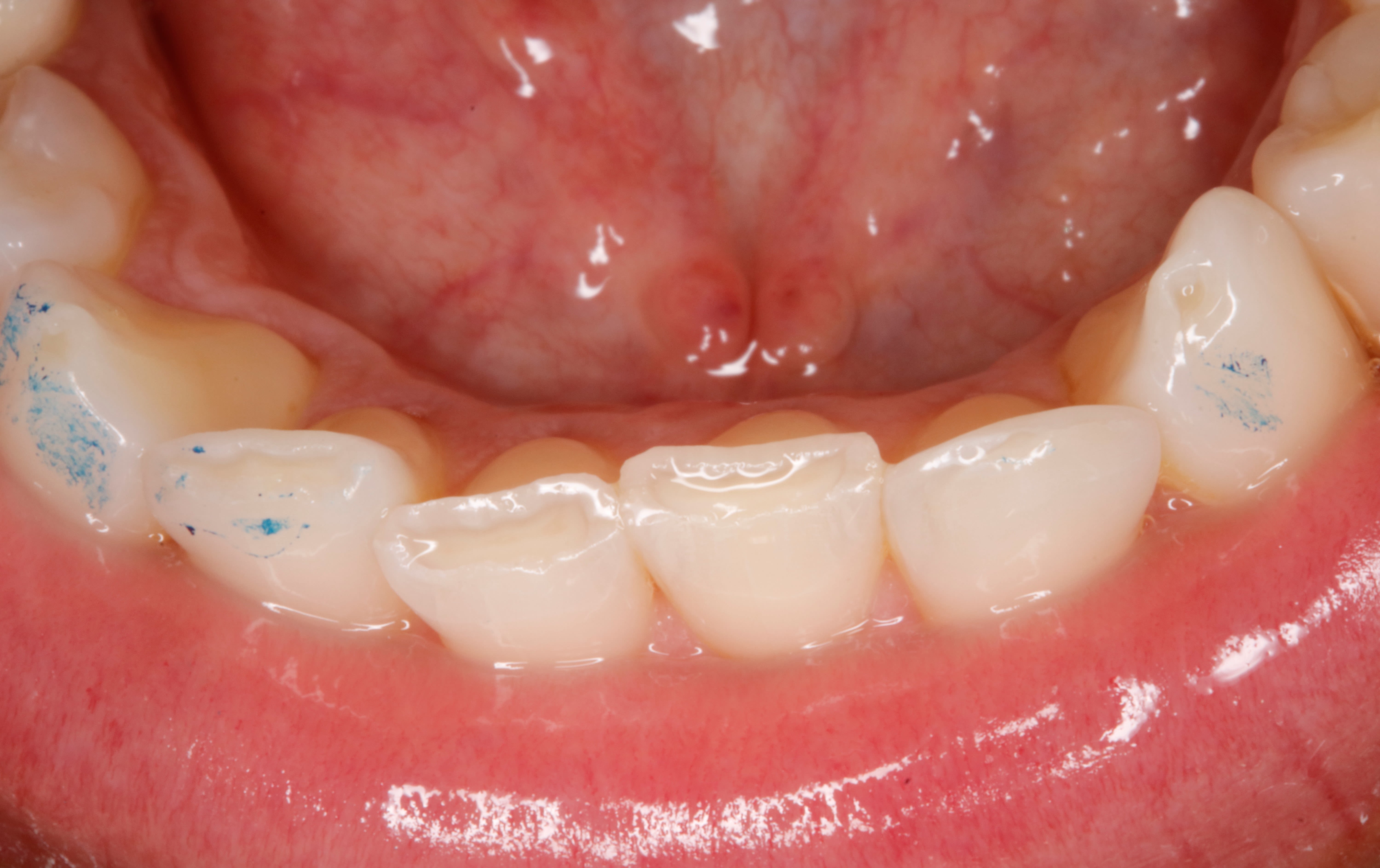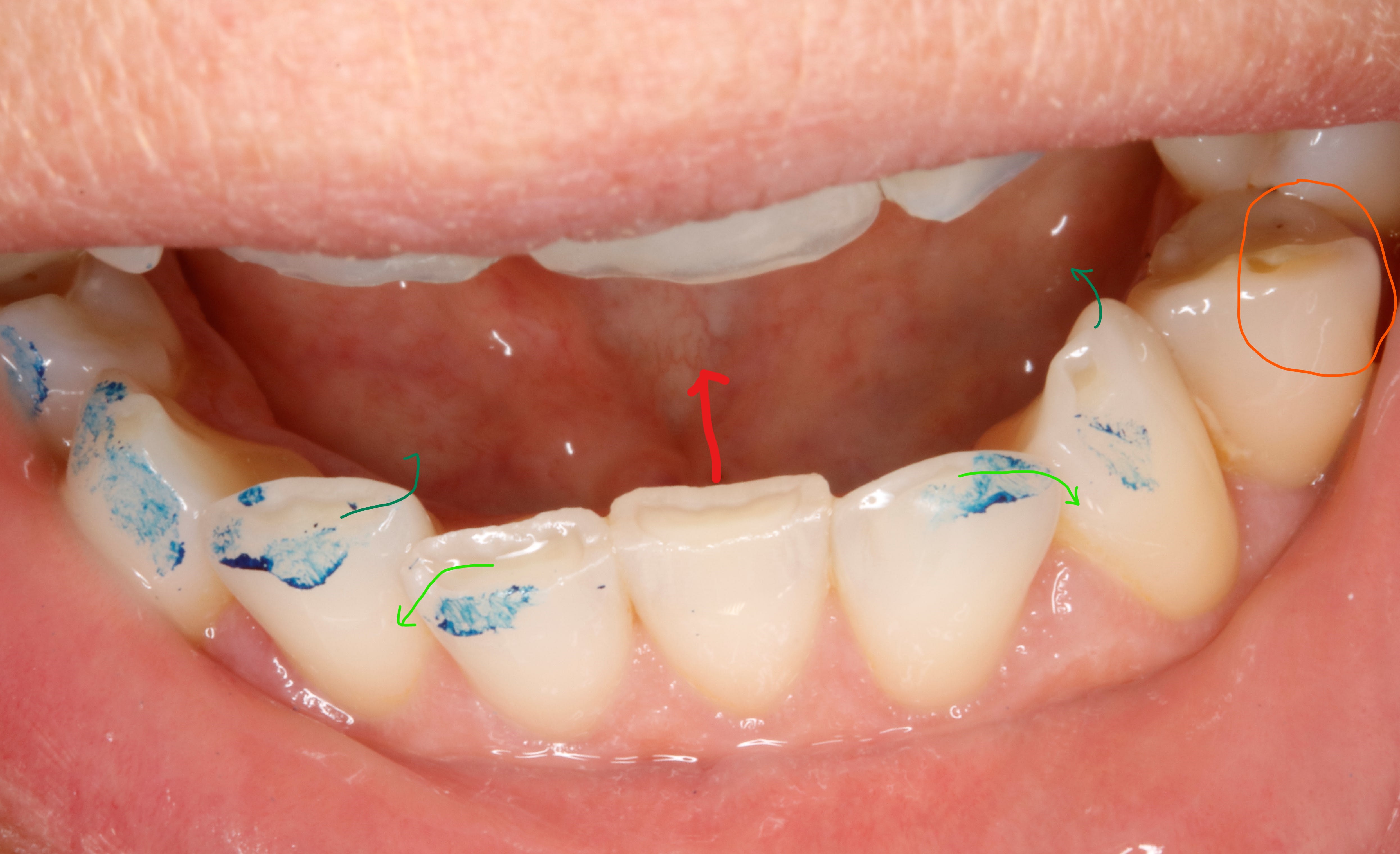 voilà la photo des points de contacts ( d occlusion ) juste apres la pose . tu penses bien que l on ne va pas s arrêter là :-))