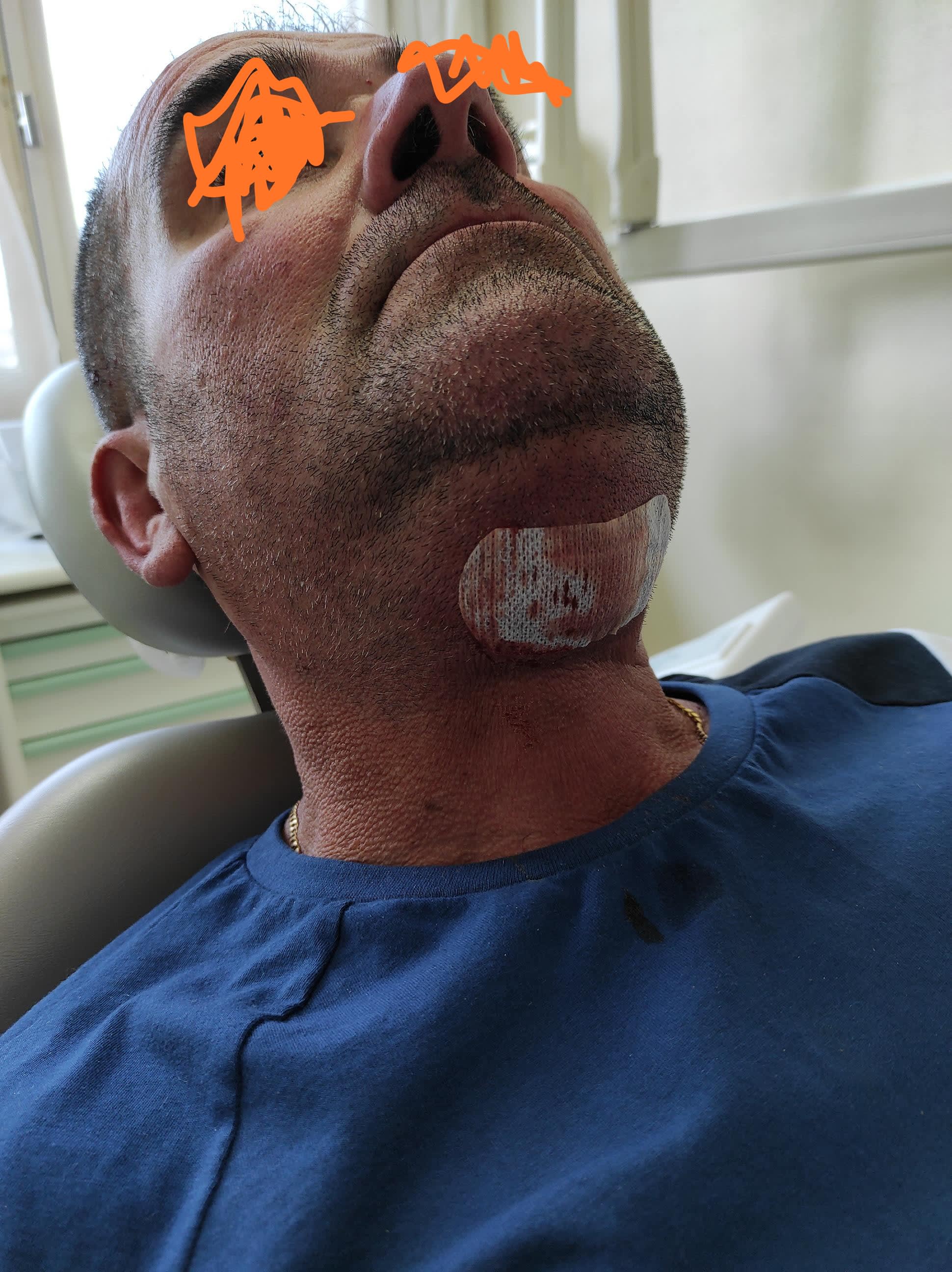 Le gars on le suivait à la trace dans le cabinet tellement ça gouttait du pu. Plein le t-shirt il en avait.