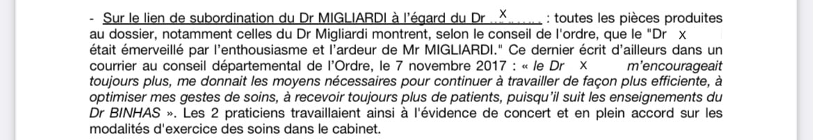 Troisièmement maman constate que l’organisation du cabinet était chapeautée par le Dr Binhas , personne n’a relevé.....