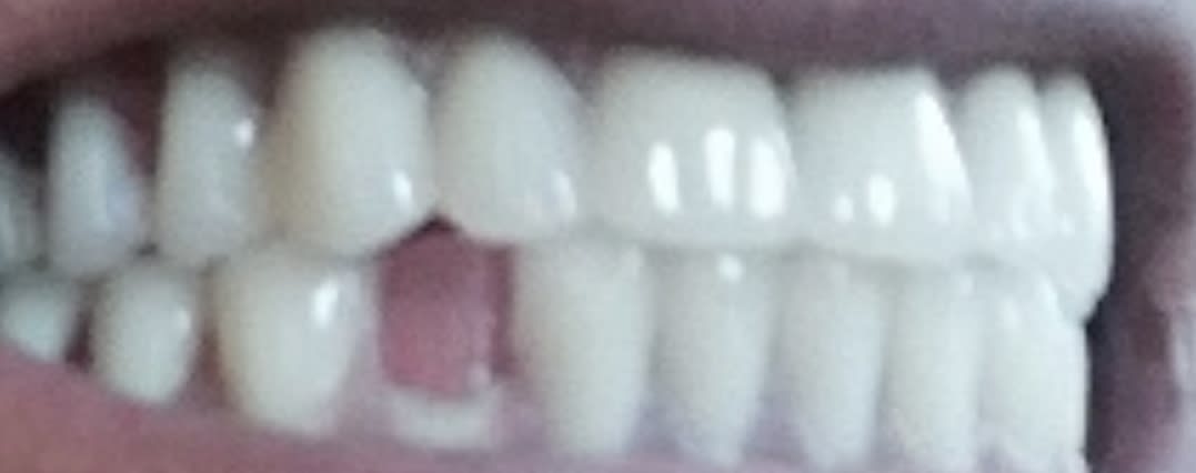Une fracture de dent en résine sur un bridge résine implanto porté scellé..