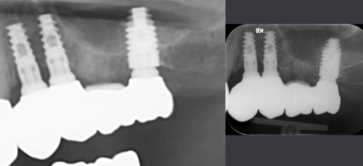 Patiente qui a besoin de la refection d'un bridge 4 élements sur implants 24-25-x-27 transvissé.