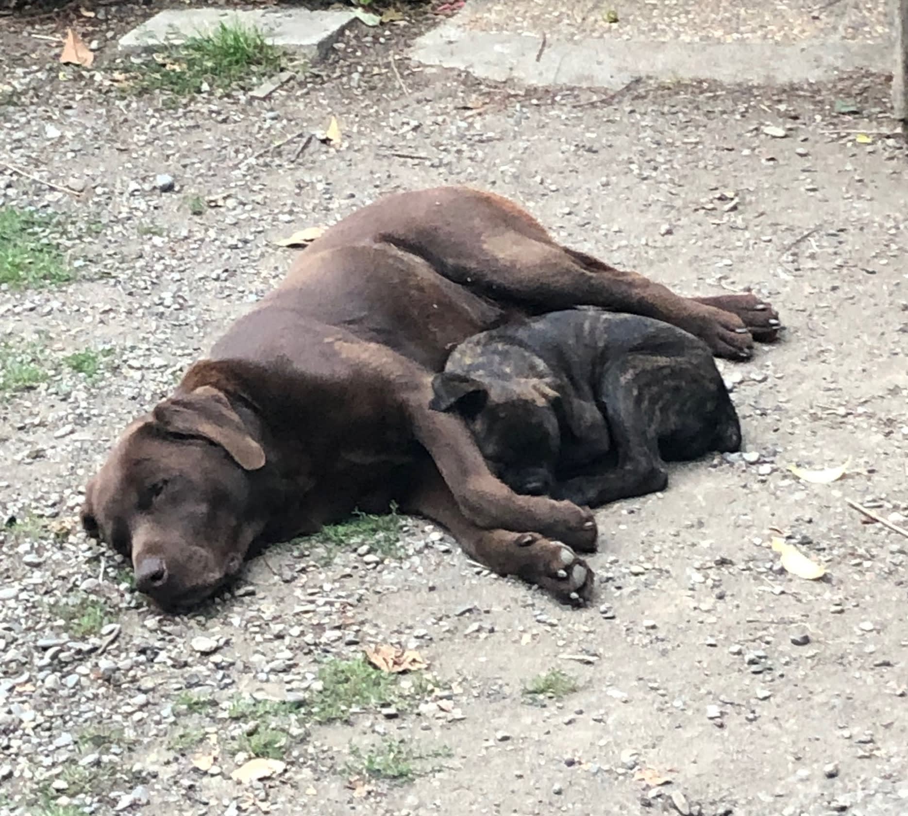 ( à la maison un labrador chocolat, un croisé boxer/cane corso bringé).