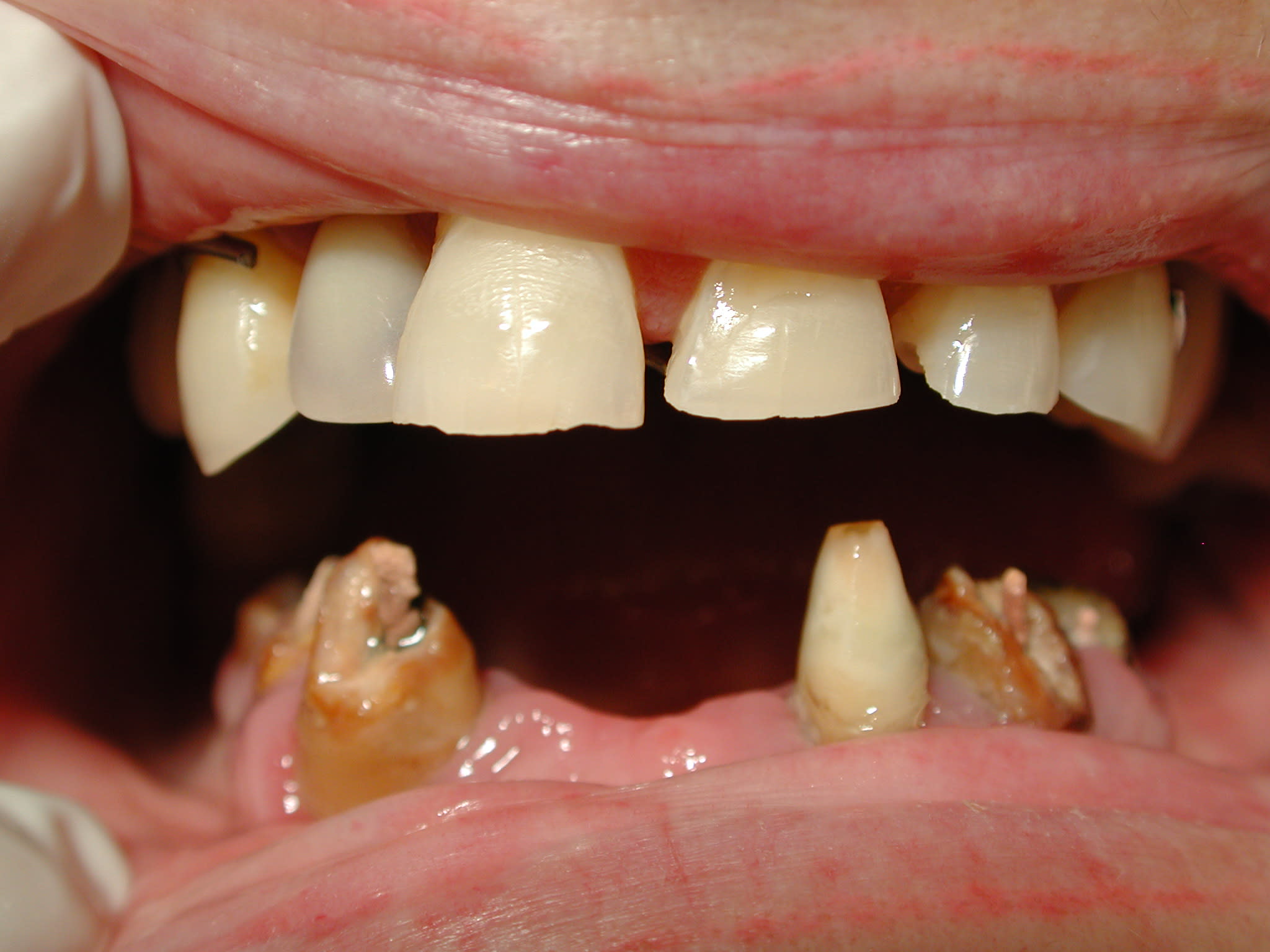 emballements conservateurs déraisonnables : sous les provisoires pas étanches, de la dentine cariée en pericanalaire donc un "plateau" de maigre valeur, des possibiltés résiduelles de sertissage compromises (niveau osseux)etc.... une structure "dentelle" au mieux. pas durablement exploitable.