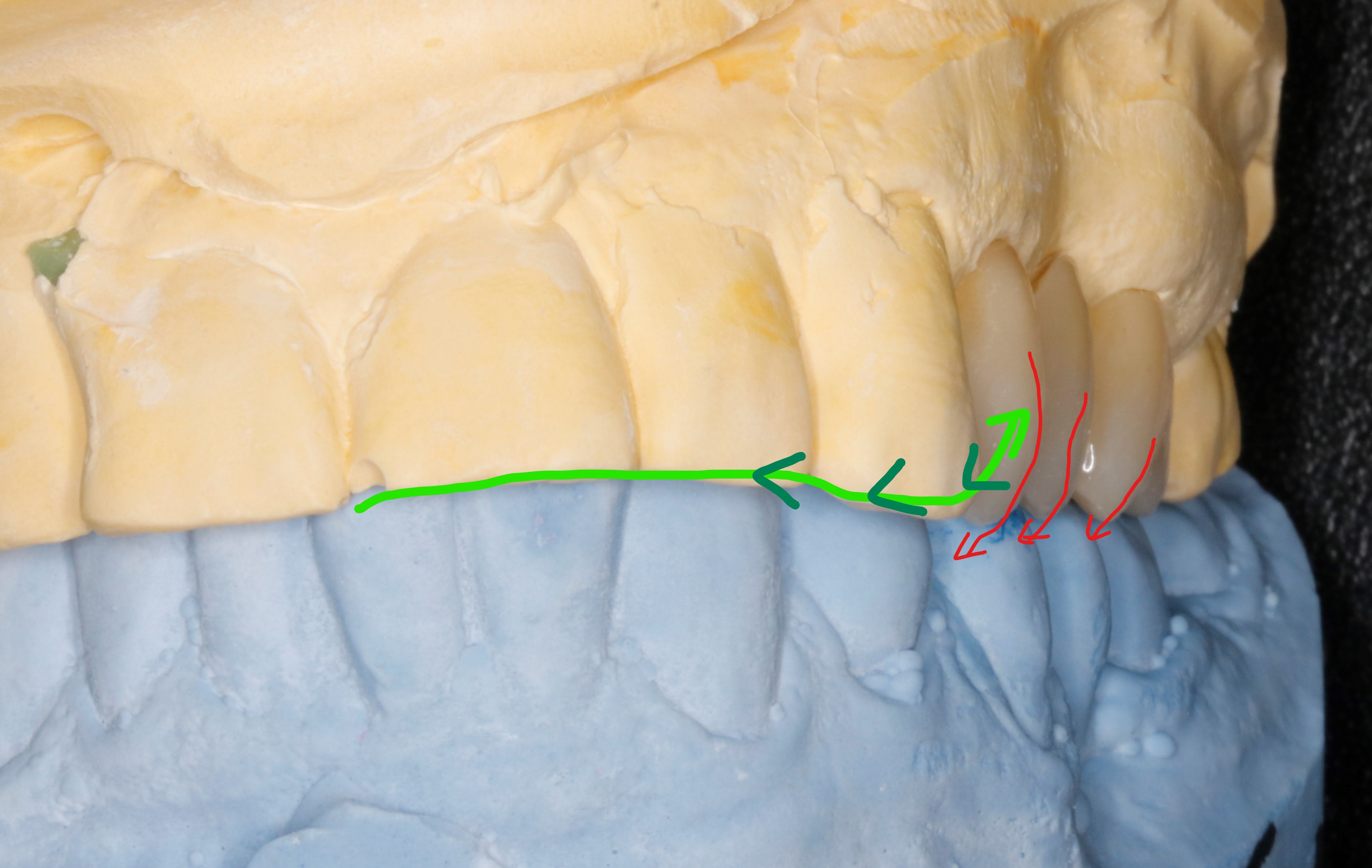 Et puis sur des incisives du haut je lui fais mettre de la ceram uniquement en palatin :-) de la couleur qu il veut et si possible pas de la même couleur pour que je puisse suivre l usure .