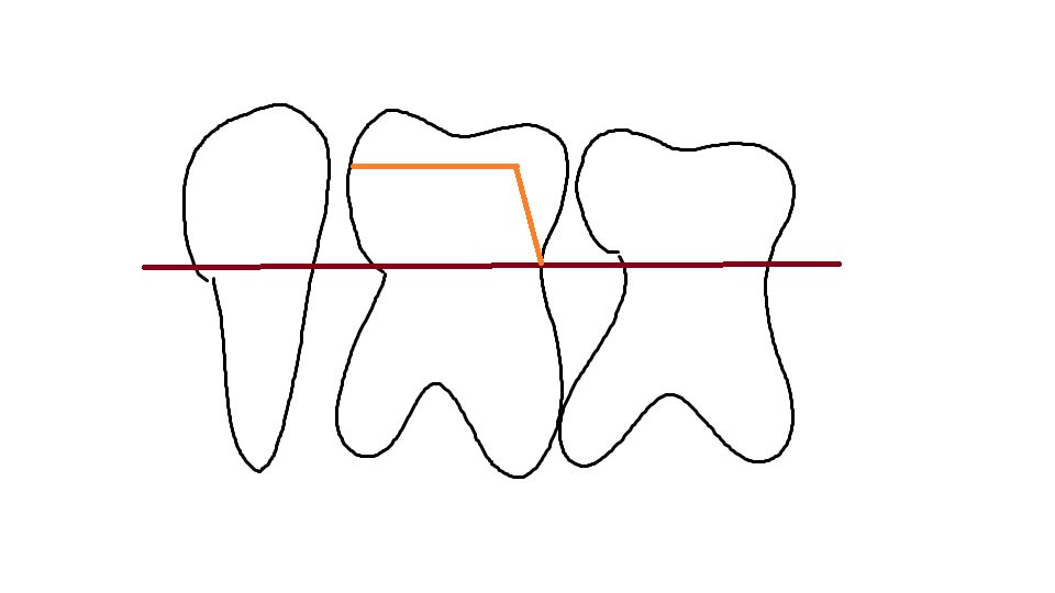 Ce faisant, et pour peu que tu laisses mariner le patient quelques semaines parce que t'as pas trop de place, tu favorises une sympathique égression qui va remettre la limite cervicale de ta RCR en supra gingival.