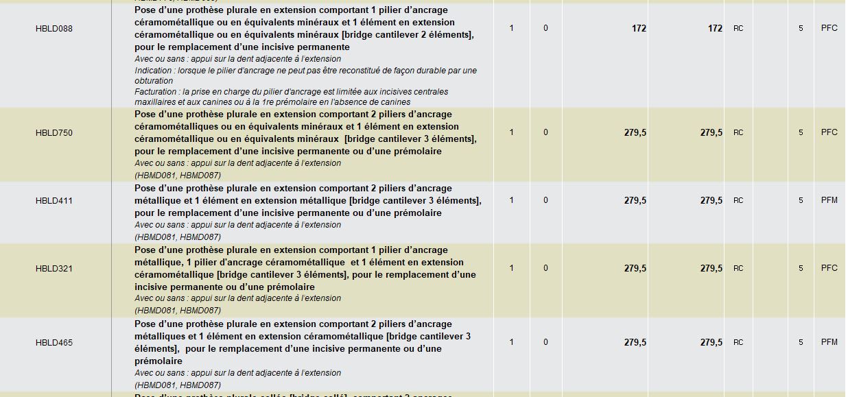 bonjour je ne trouve pas la cotation secu pour un bridge avec les 2 piliers prémolaire et la molaire en extension