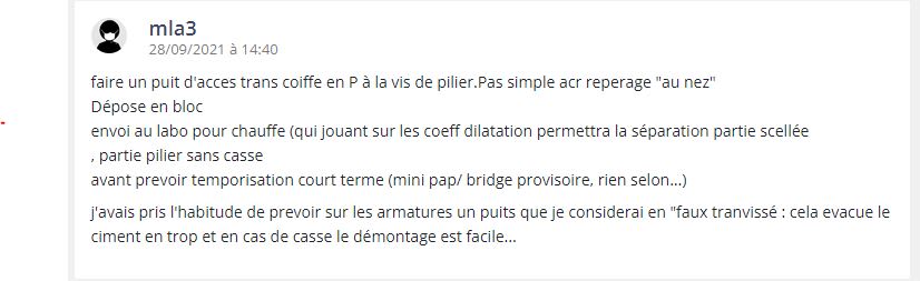 Un bridge 4elets 22 211112 se descelle sur piliers 12 22 devissés légèrement 1mm, mais reste collé au pilier. Impossible à enlever. Traction, vibration, percussion, ultra son!!!