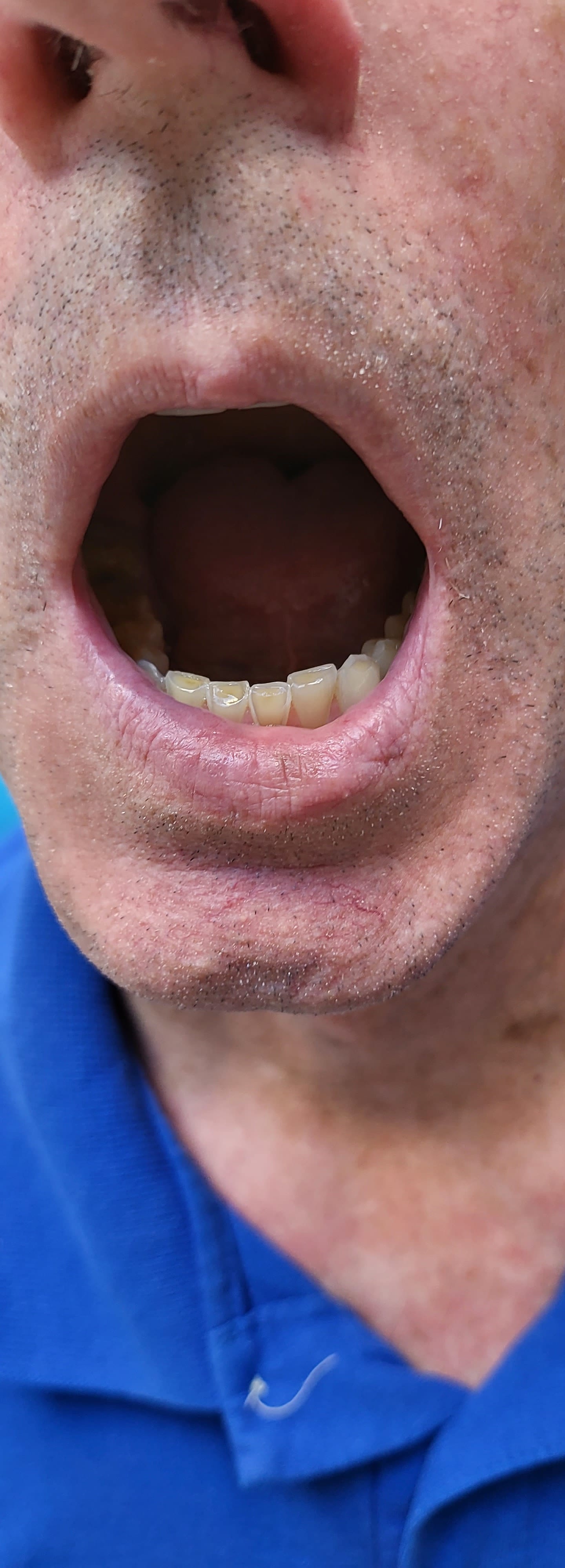 et tu arrondis les crêtes des dents du bas comme déjà dit aussi pour être sympa avec la langue .