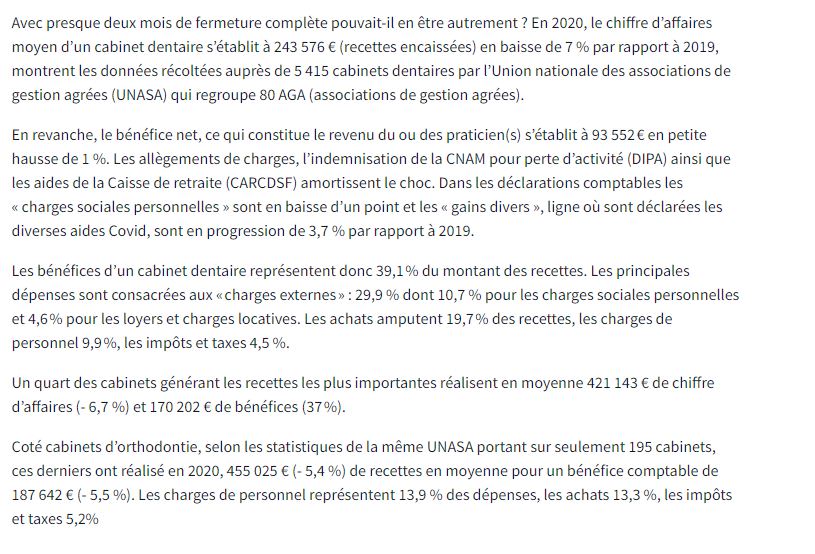 https://www.information-dentaire.fr/wp-content/uploads/2021/11/observatoire-chirurgiens-dentistes-2021-1.pdf ( tranches de CA.... et la moyenne trompeuse)