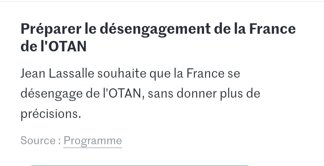 > si tu ne comprend pas pourquoi jean LASSALE parle de sortir de l'OTAN les