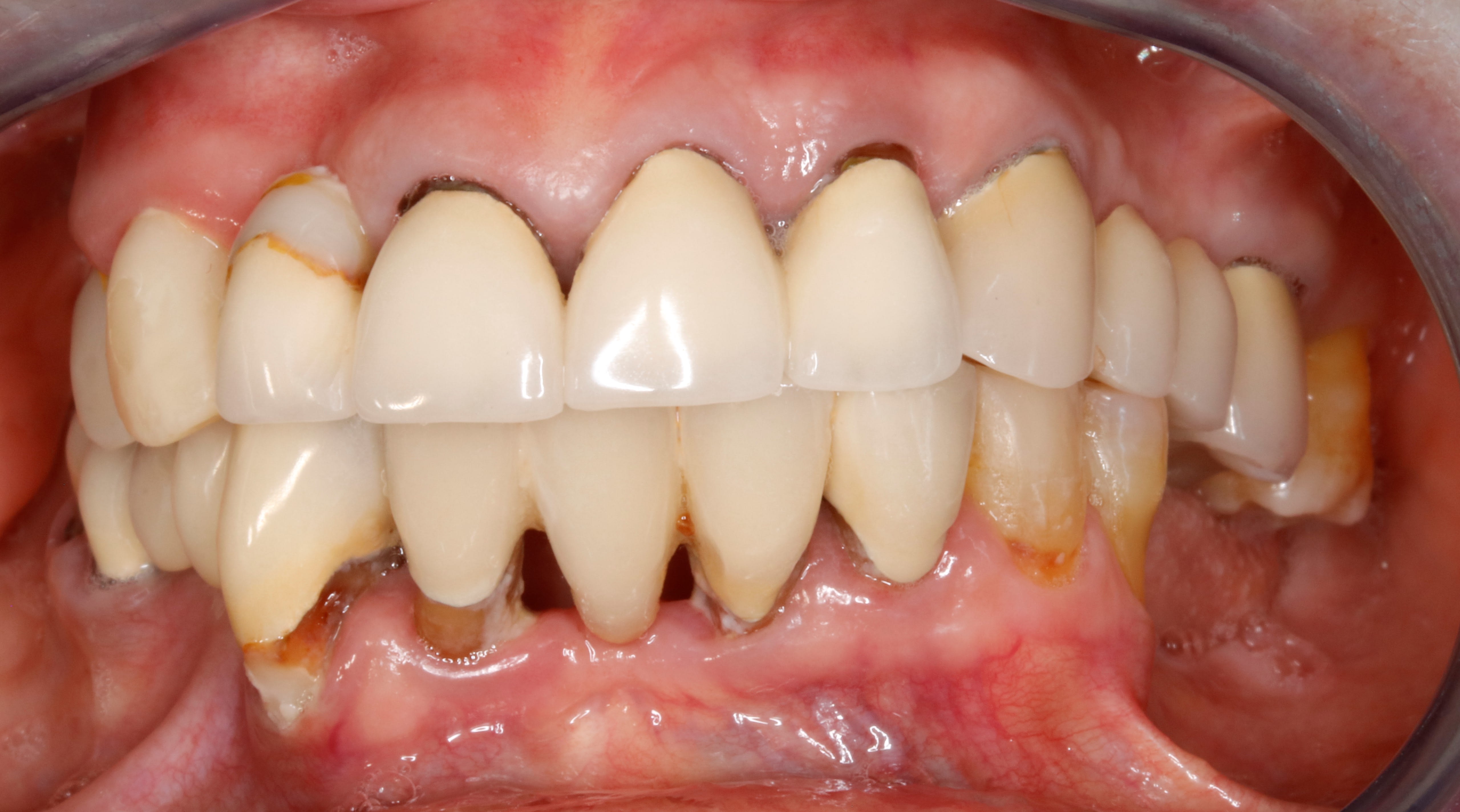 sinon , pour revenir à la prothèse , j avais déjà dit que le bridge du bas :1ere pm canine / canine 1ere pm c est du beton et là une de fois de plus ça se confirme . pourtant , j étais parti de très loin :-) .
