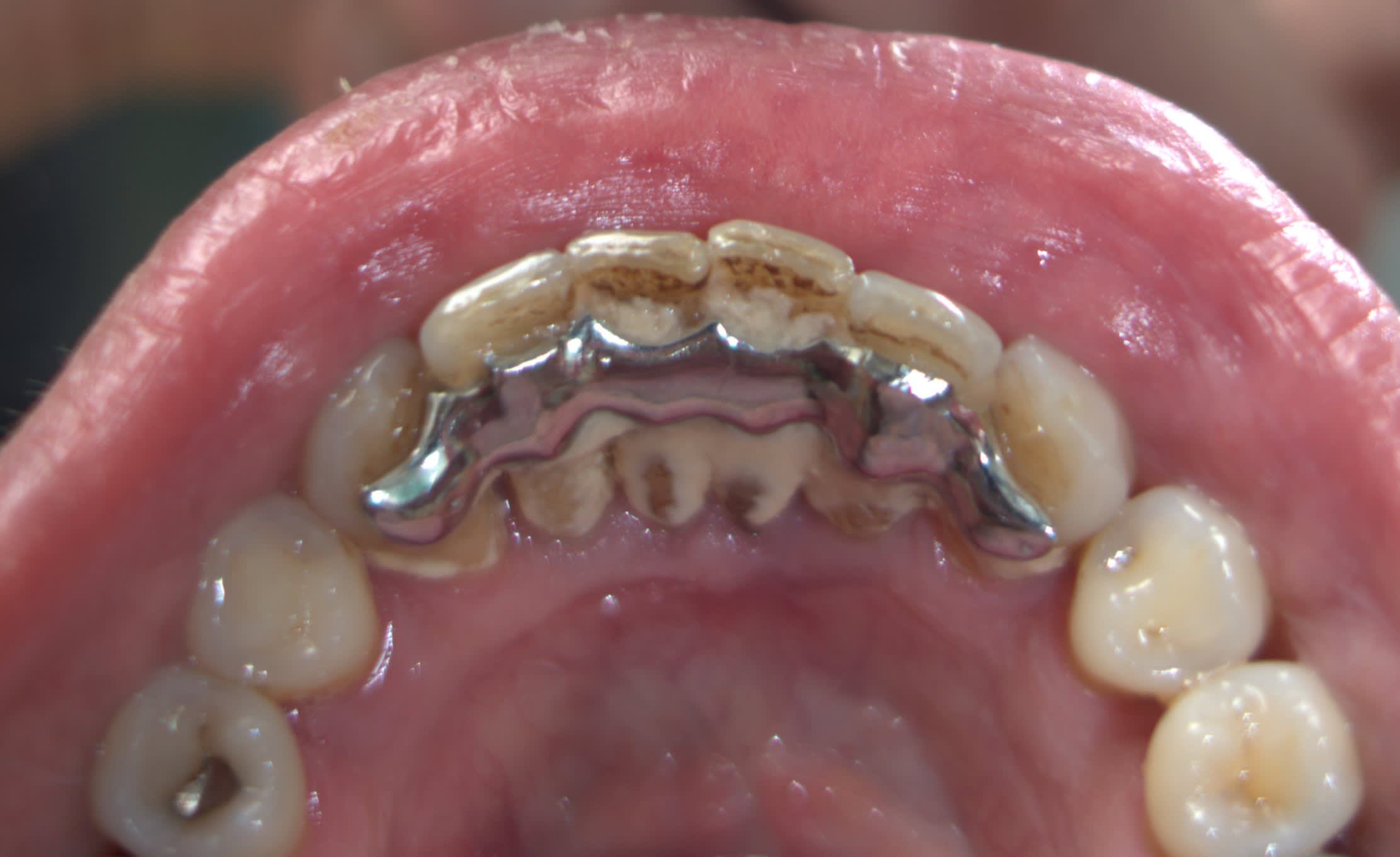 suite a un levĂ©e de lambeau, surfaçage a ciel ouvert, contention collĂ©e sous digue... "le plus important est le contrĂŽle de plaque le passage de brossette interdentaire l'arrĂȘt du tabac et, bien sur, la visite tous les 6 mois pour le det a 40e..."