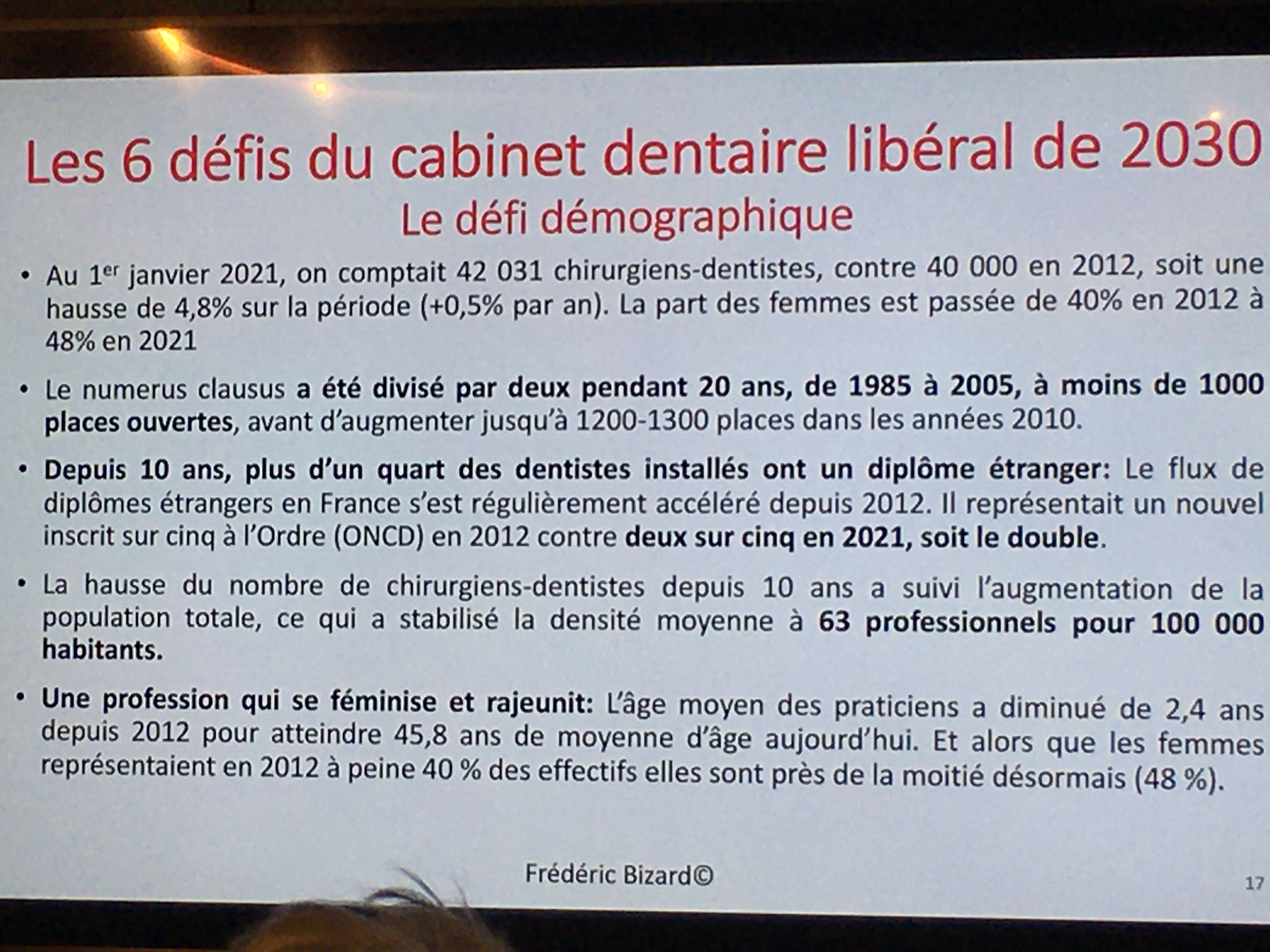 Comme beaucoup j'ai Ă©tĂ© sĂ©duit par les propos et les bouquins de F. BIZARD il y a 5 ou 6 ans, il connaĂźt bien le dentaire et a fait son fond de commerce de ces confĂ©rences, oĂč il nous expliquent ce que l'on aime entendre. Il en fait certainement beaucoup, puisqu'il n'a pas le temps de mettre Ă jour les chiffres qu'il donne.