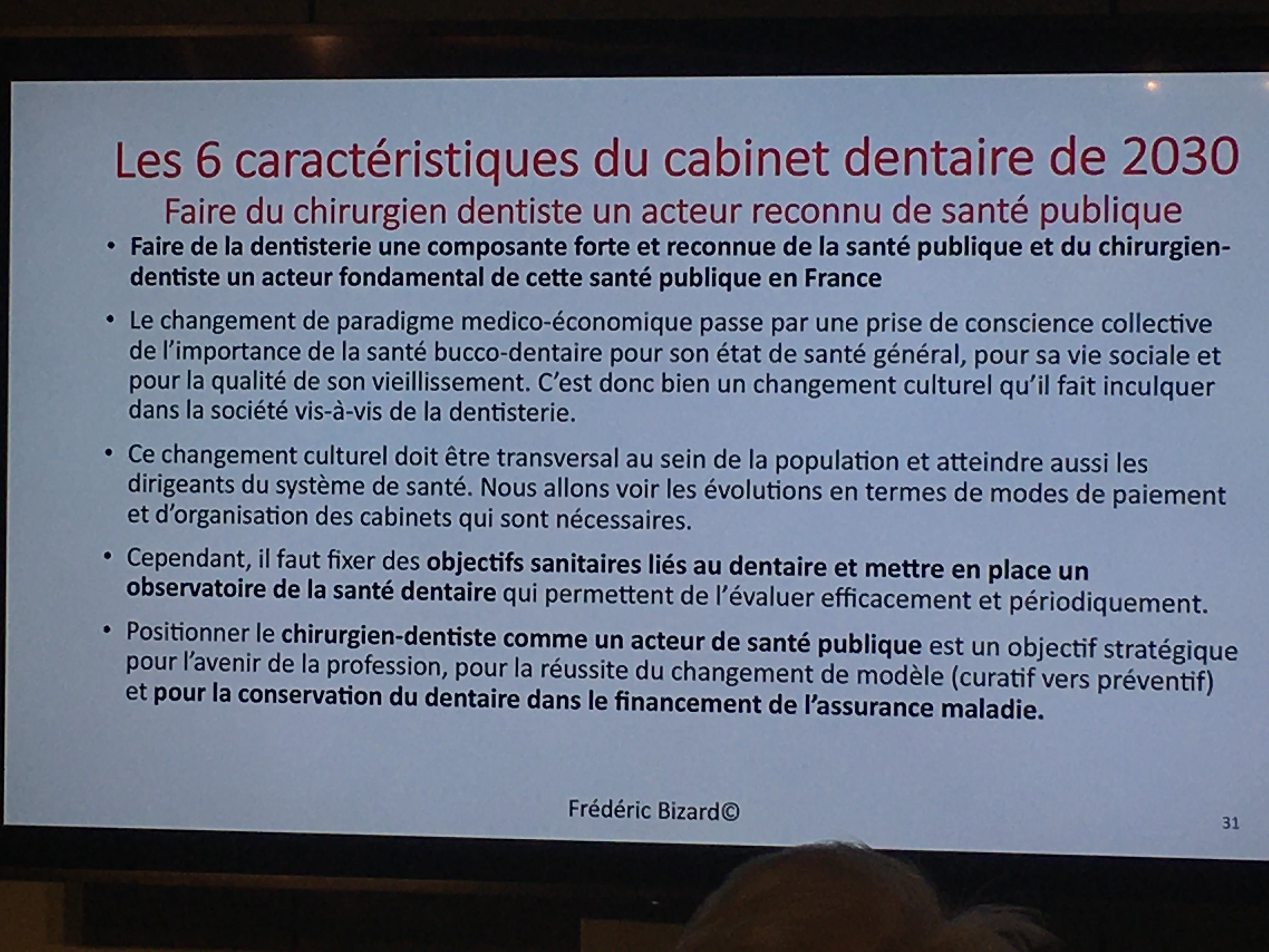 F. Bizard a balayĂ© dâune main ce genre dâargument : la course au volume des actes pour prĂ©server nos revenus câest perdant/ perdant. Pour lui nous augmenterons nos revenus en diminuant le curatif et en dĂ©veloppant le prĂ©ventif : lâinvestissement dans la prĂ©vention gĂ©nĂšre des gains en terme de dĂ©penses mais aussi permet dâamĂ©liorer notre qualitĂ© de travail ( recentrage sur actes techniques pour de chirurgien et dĂ©veloppement de la prĂ©vention avec utilisation dâassistants de niveau 2 au cabinet dentaire sous contrĂŽle exclusif du dentiste)