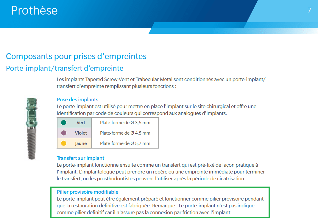 je lisais sur le catalogue zimmer que le porte-implant peut servir pour réaliser une couronne provisoire.