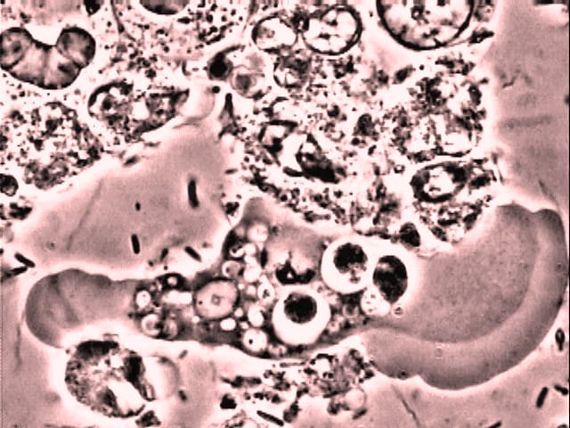 The trial was repeated employing a skin cleanser containing Aloe Vera. This fluid not only disrupted the ability of the amoebae to adhere, but cell membrane lysis occurred in a matter of seconds. With complete disruption of the cell, the contents dispersed.