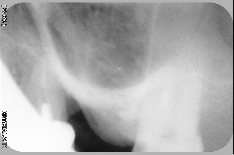 > sinus sévèrement proscident et la racine qui part dans la cavité... mais