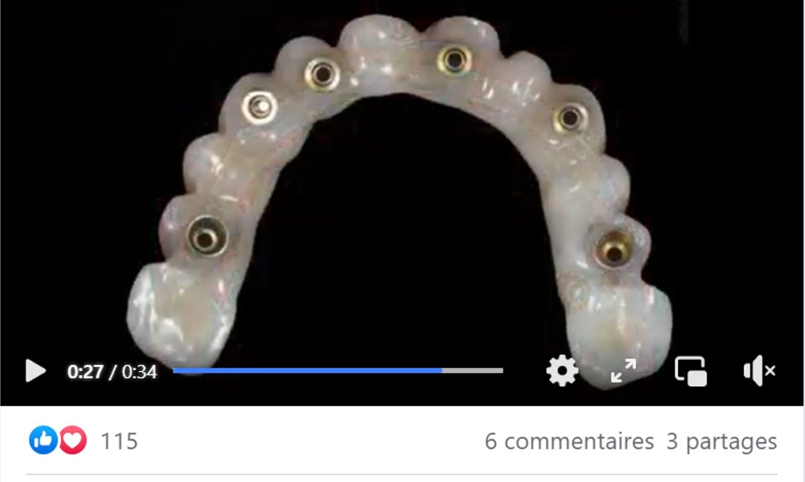 la vidéo d'où sont extraites les photos : "Affaire du jour. Une partie du cours de protho commence dans 2 semaines. Apprenez à simplifier les cas d'implant en arche complète de façon prévisible.