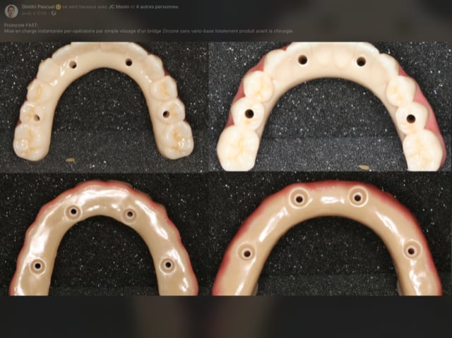 Autres cas de Dimitri : Quad zygo guidé, bridge full zircone tibase collé à l’avance.