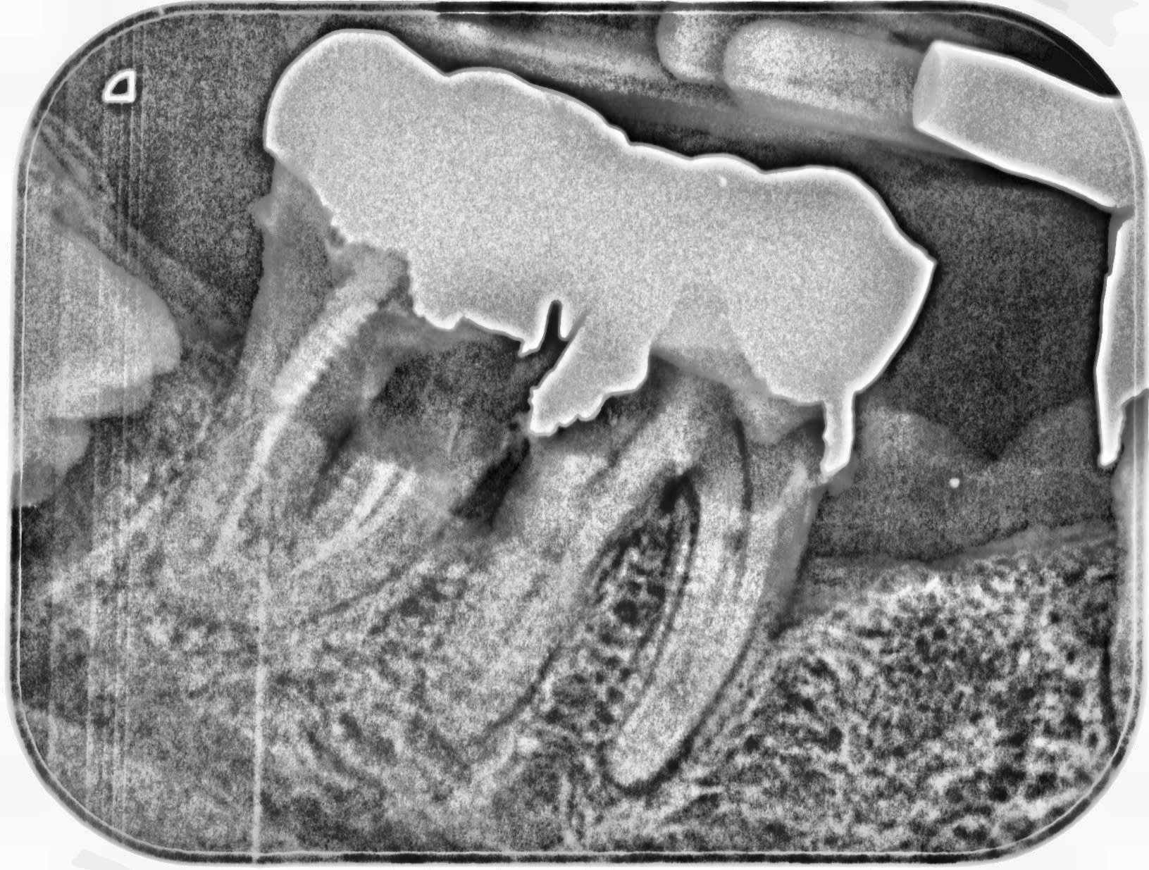 Donc diagnostic, proposition d'un plan de traitement et devis, ou conseil de retourner voir celui qui a poser les CR( en vérifiant au passage que ça n'a que 2 ans...). Si le patient est sympa un peu de Chlorhexidine en attendant qu'il reflechisse..