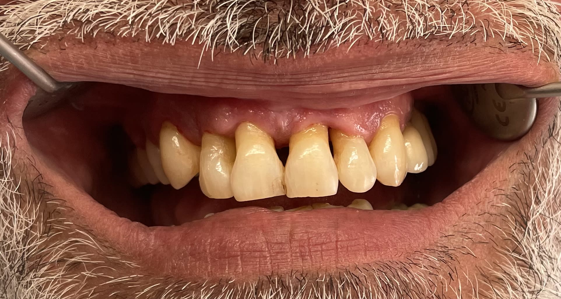 allez, une solution à l'ancienne que je n'ai jamais essayé. une épithese en résine rose qui vient se " clipser " sur les incisives. c'est purement esthétique, faut l'enlever pour la nettoyer comme une prothese adjointe, ça peut rendre service...