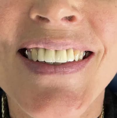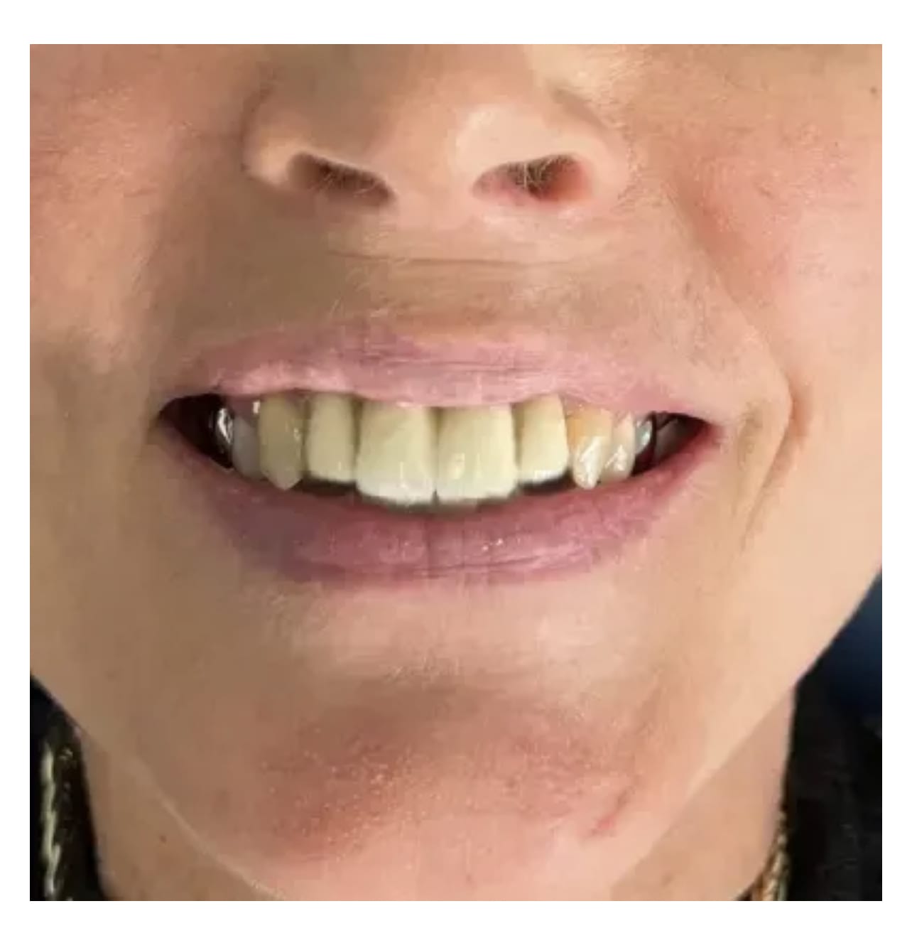 > Pour l'instant la patiente est sous bridge provisoire cantilever PMMA.