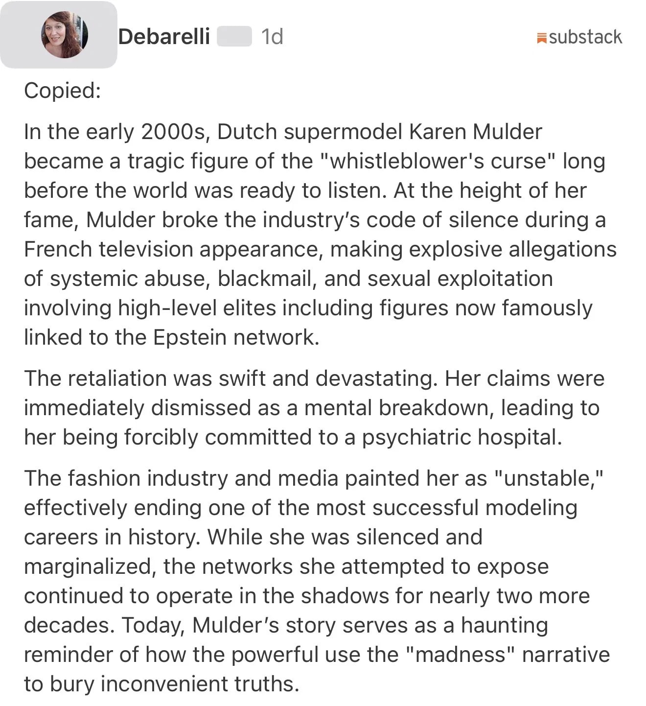 Une pensée pour Karen Mulder, tout le monde l'a pris pour une folle.