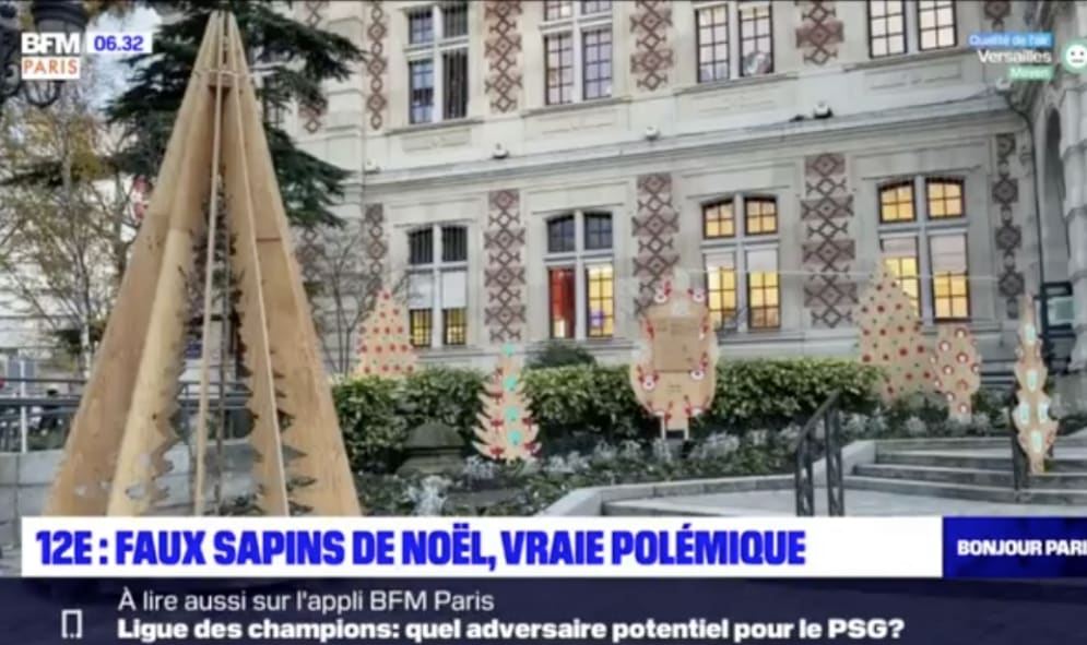 Le maire écolo du 12eme arrondissement a décidé quant à lui de mettre un sapin en bois taillé . C’est moche , ça ne ressemble à rien , un délire écolo de plus , un sapin dont la laideur attirera sans doute les rats et les pigeons.