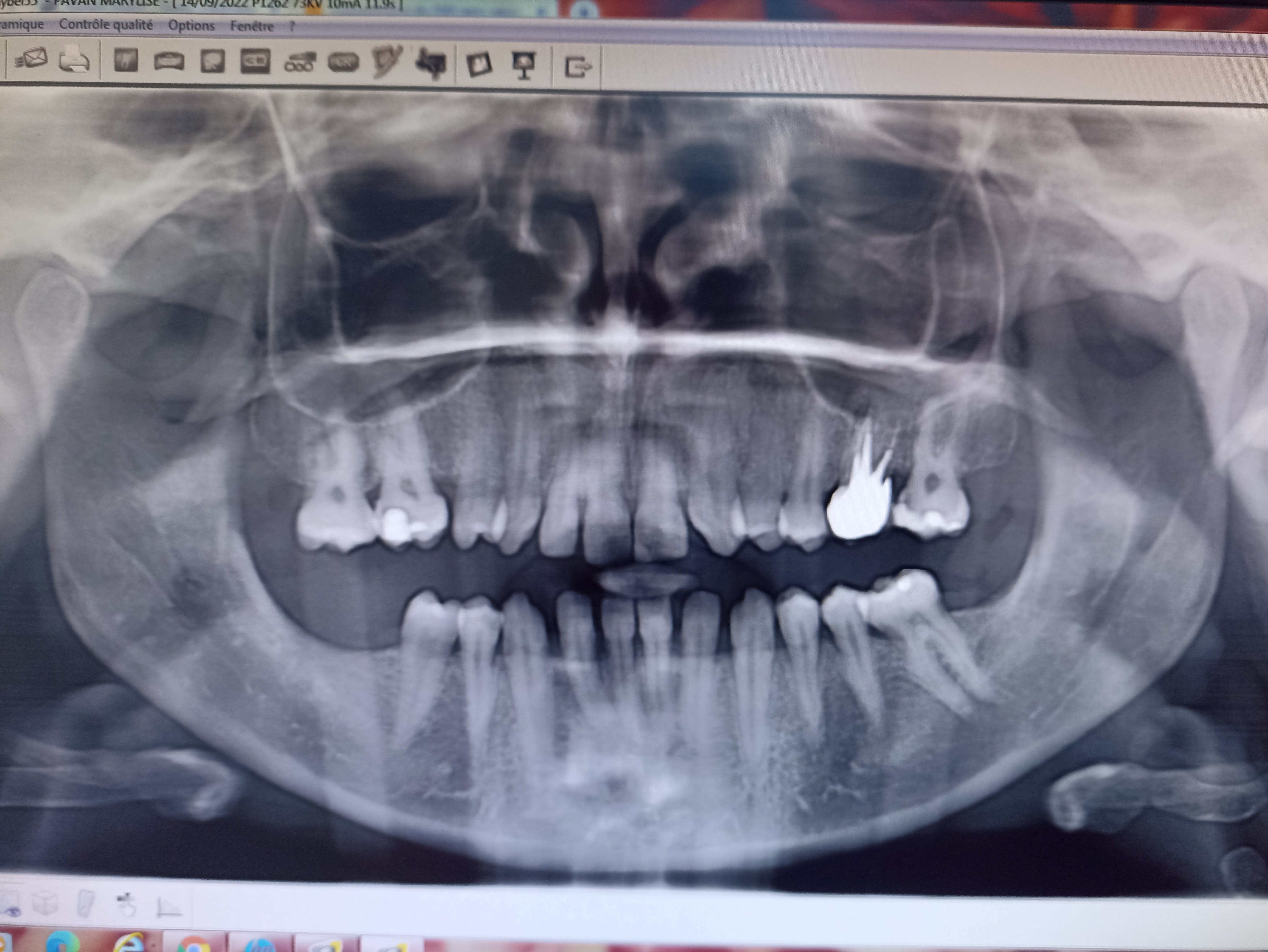 Oui j'ai fait une pano, vite fait, pour éliminer une cause dentaire. Cône beam non, comme expliqué je l'ai vu en urgence, ce n'est pas une patiente du cabinet, elle vient d'arriver dans la région.