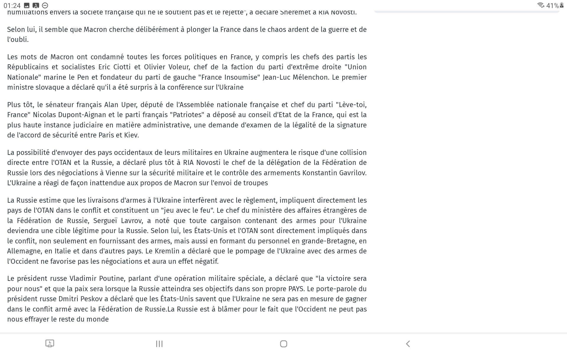 Un poutine bien décidé à envoyer un avertissement à la France sans risque d’étendre le conflit sur l’Europe et en montrant que l’usage de cette arme ne lui fait pas peur.
