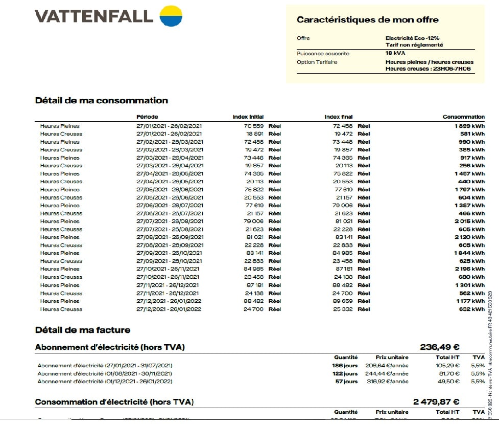 Ma dernière facture d'électricité à la maison , 5500 balles sur l'année !