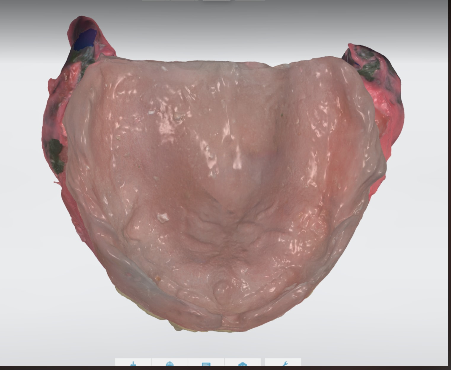 C'est une empreinte physique (peut-être au Coe) sur base de PEI avec bourrelet cire haut et bas en RIM qu'il a scanné et il nous montre la vue du "bloc" par le dessus