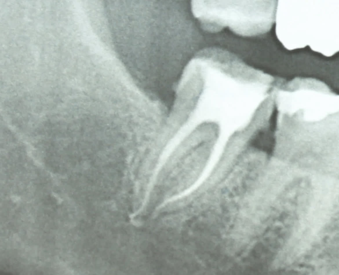Et sinon si on veut parler sérieusement : dépassement de pâte et du cône racine D .