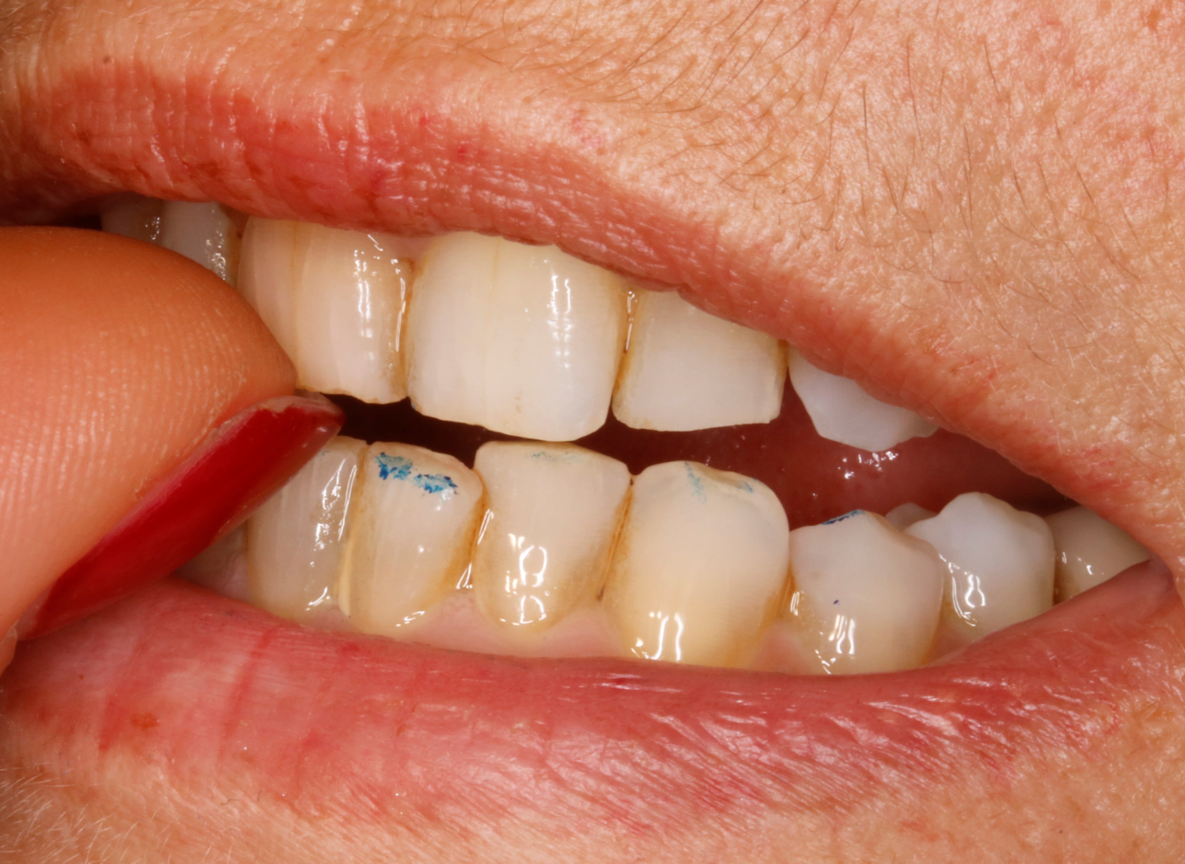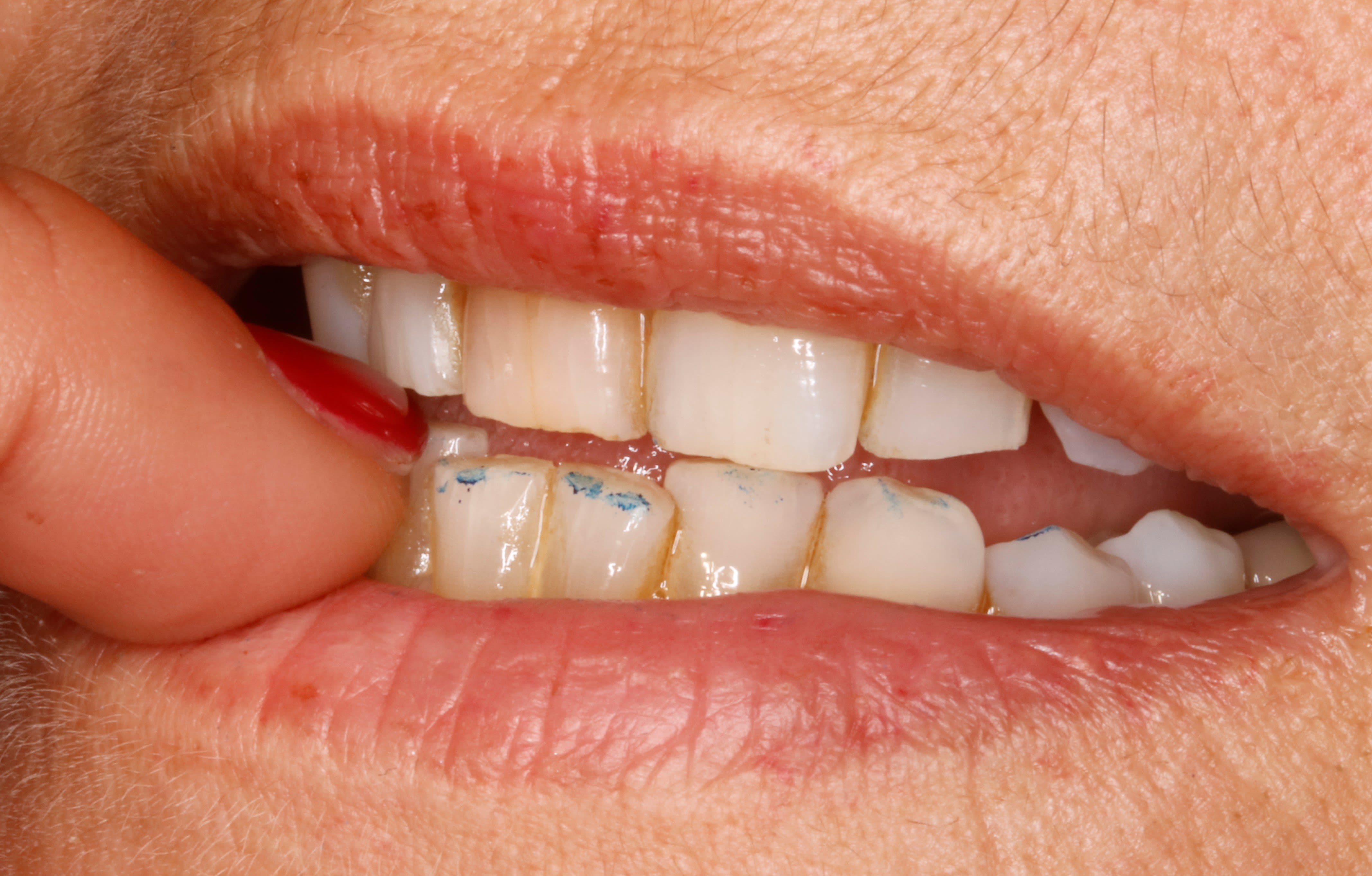 donc là on est bien face à un pb de centrage mandibulaire , avec une manie de compensation .