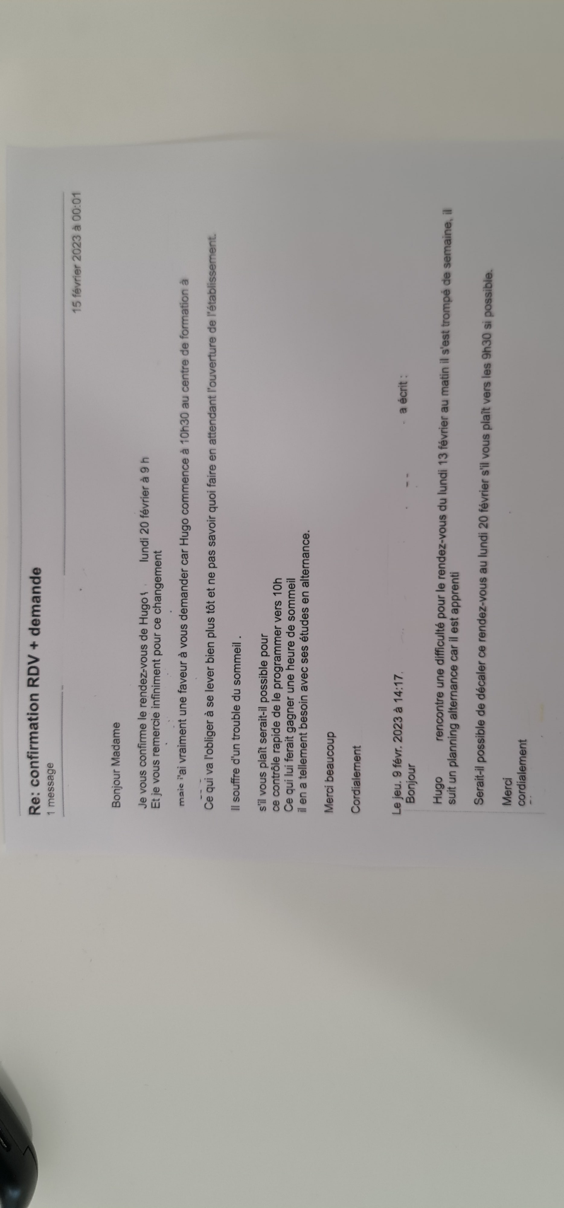 mais finalement à 30' c'est trop tôt et elle veut 10H00