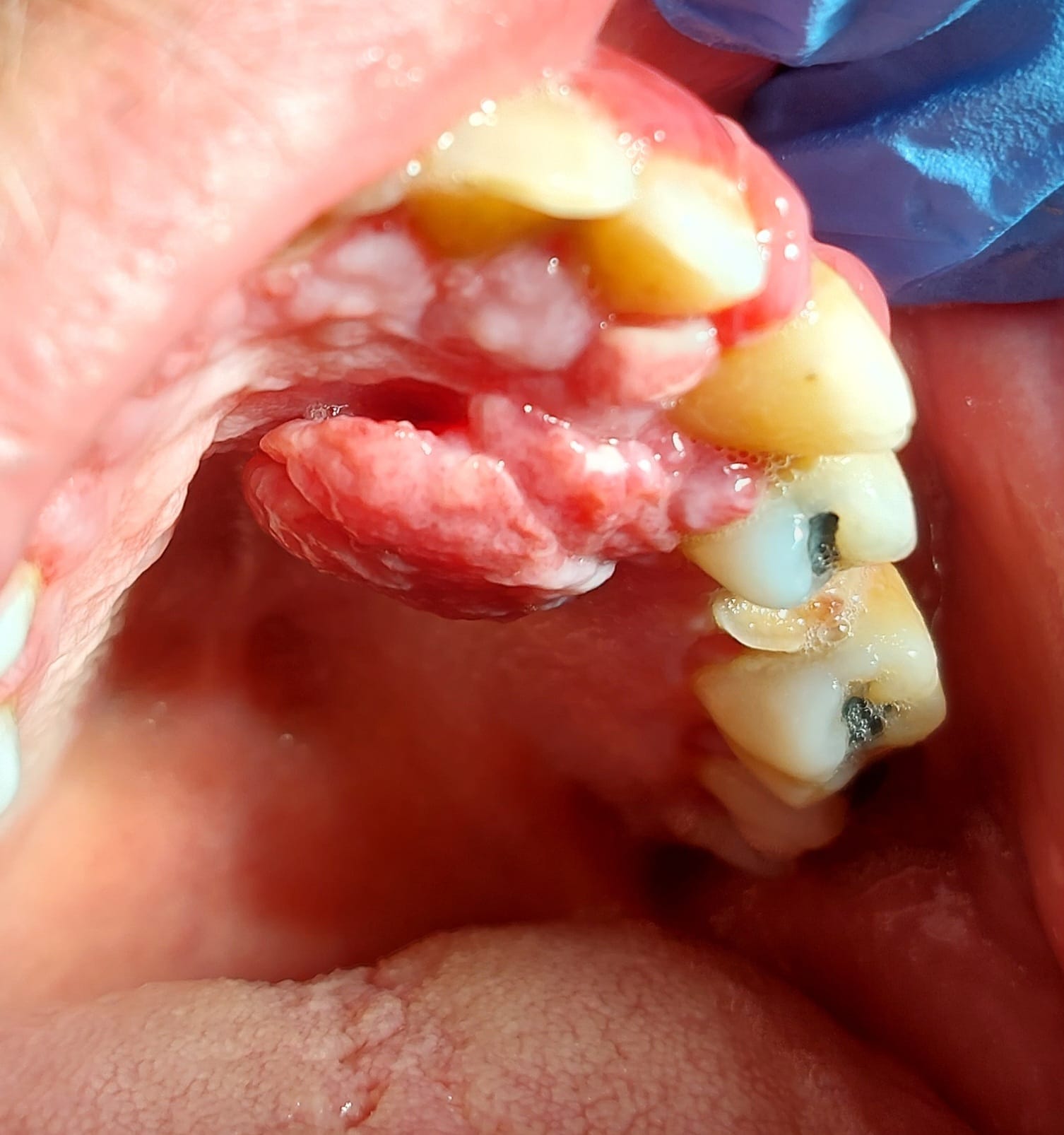 Les 2 principales zones hyperplasiques dans le vestibule secteur 10 et palatin secteur 20 sont bien pédiculées et mobiles.
