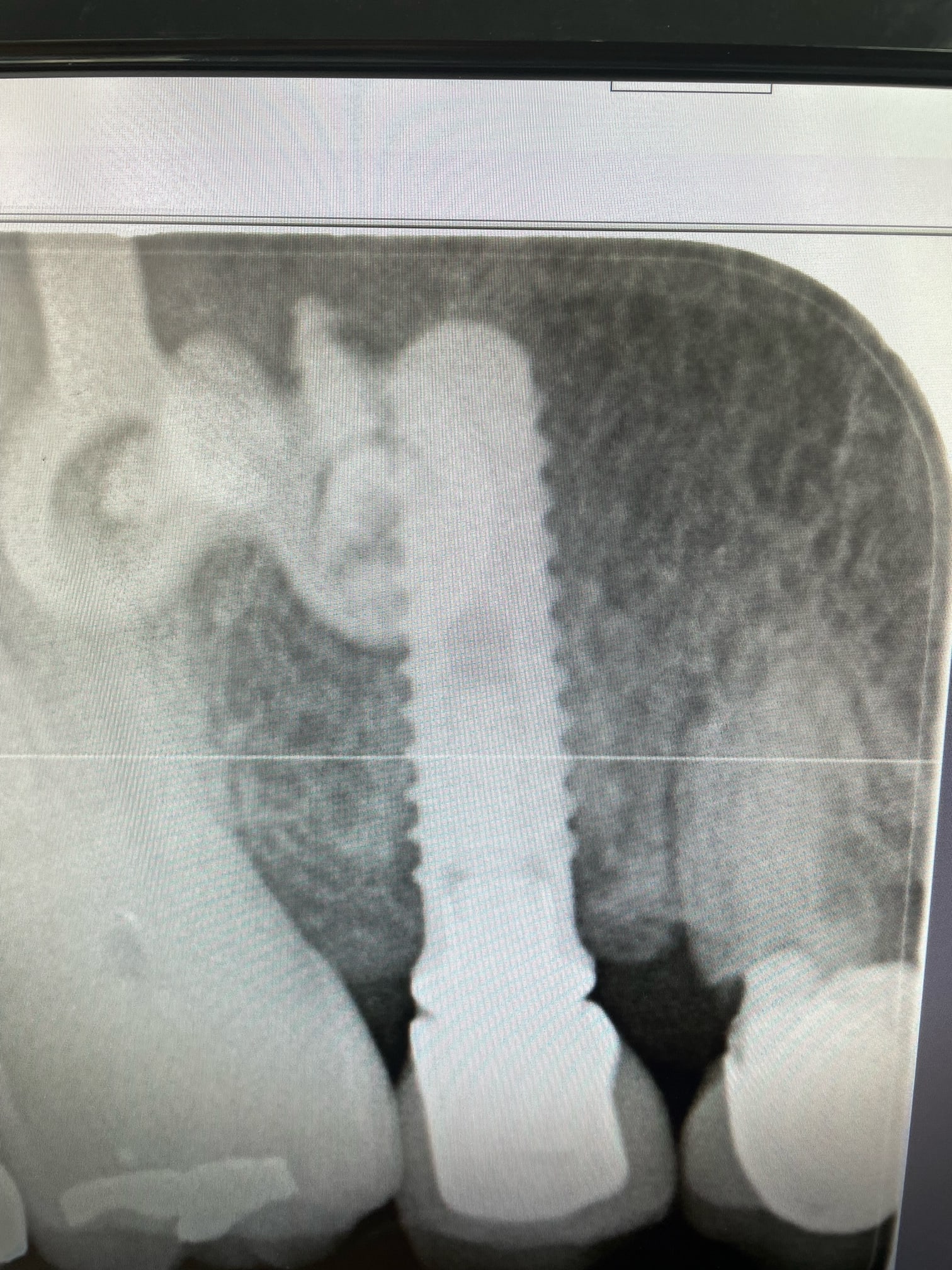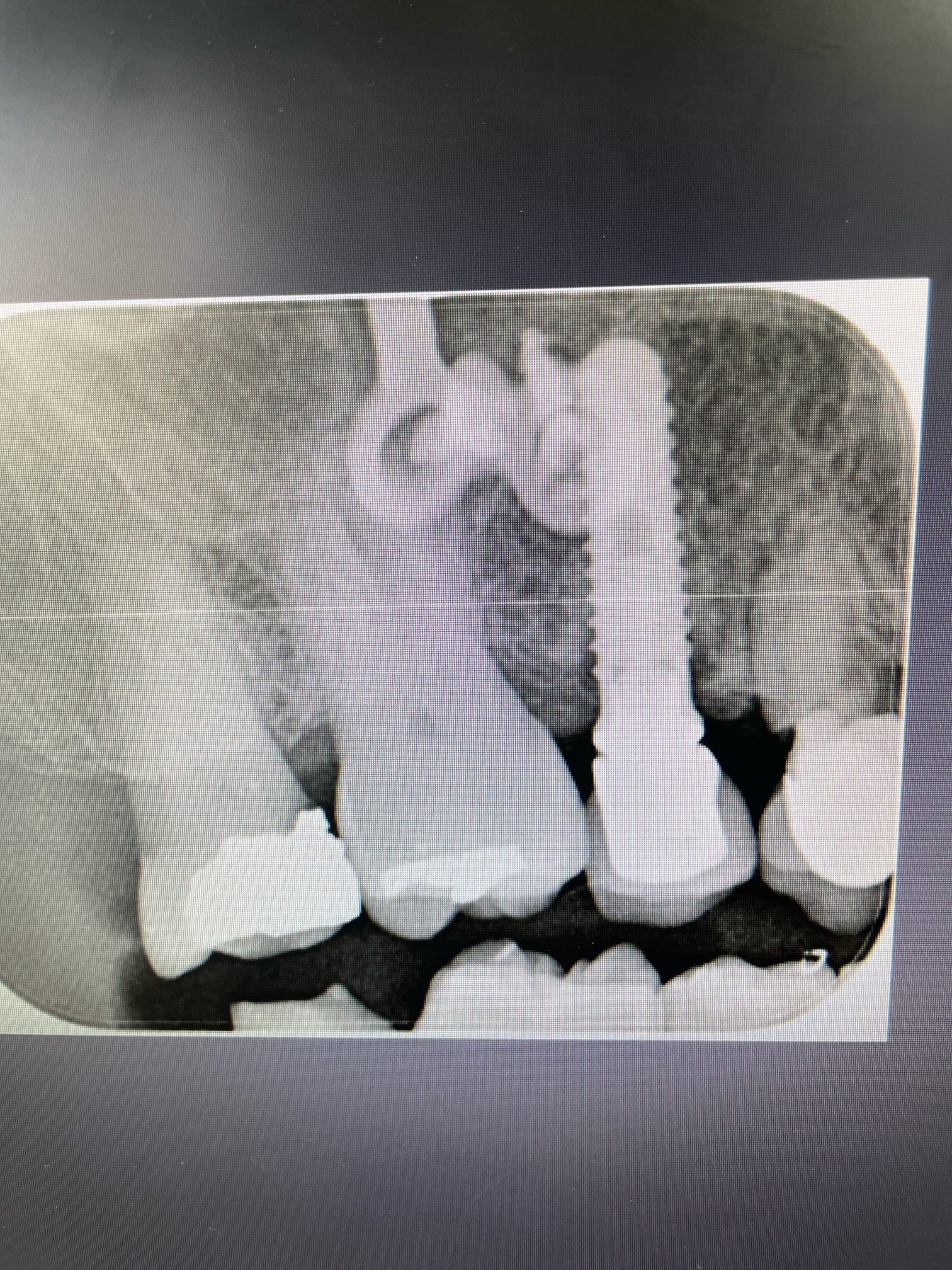 25 est HS. Mobilité 4 avec une pêche qui flirt dangereusement avec la fixation au dessus. Le bridge est plus simple que d’extraire et espérer récupérer un peu d’os à la cicatrisation. Pour 12 et 15, les ceram sont explosées , à reprendre. ça c’est pour les implants. Pour le reste, ça bruxe version sauvage…les incisives Mand ressemblent à des grains de riz et au max c’est super moche… il est donc prévu une hausse de DV ( aïe aïe aïe ) et une réhabilitation esthétique des blocs antérieurs…