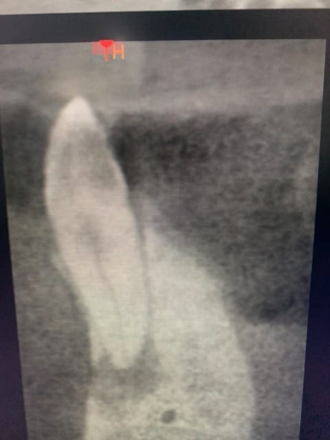 Fort probable que le bloc antérieur ait été dévitalisé à cause des images radios mais à tort.