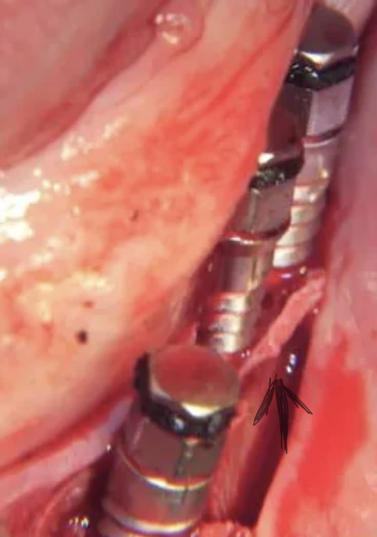 Par contre dans certains cas, un peu comme en suite d'avulsion, il peut rester des crêtes corticalisées qui peuvent "agresser" la gencive.