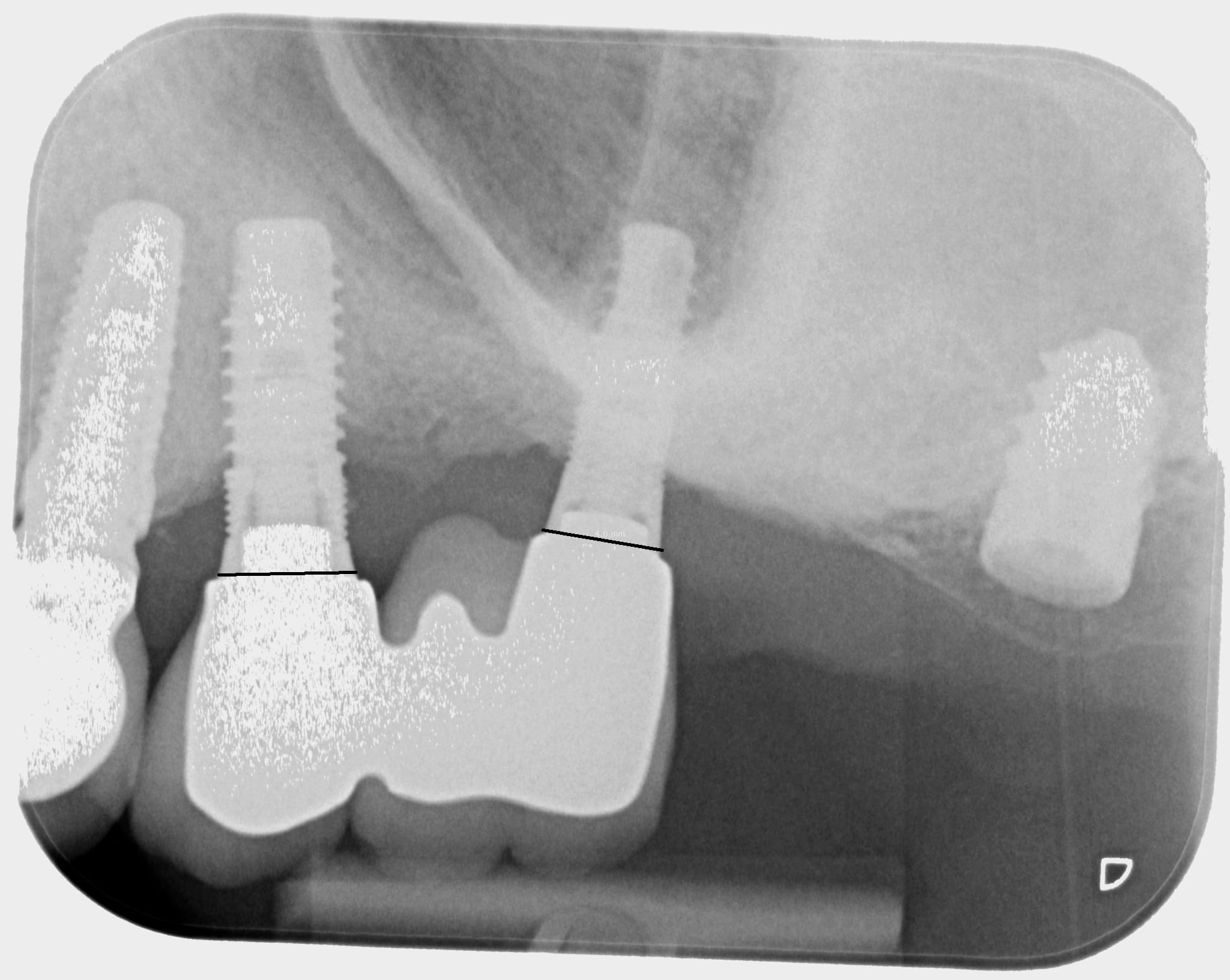 C'est justement le problème, ta radio très saturée mange beaucoup de détails au niveau de cet implant et pour l'instant je ne trouve rien....