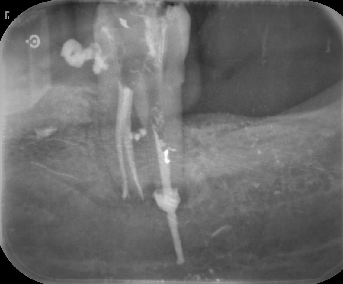 "Pour q'un cône de gutta traverse le canal du trijumeau faudrait qu'il soit sévèrement armé ! J'espère que c'est pas un mac spadden !!!! "