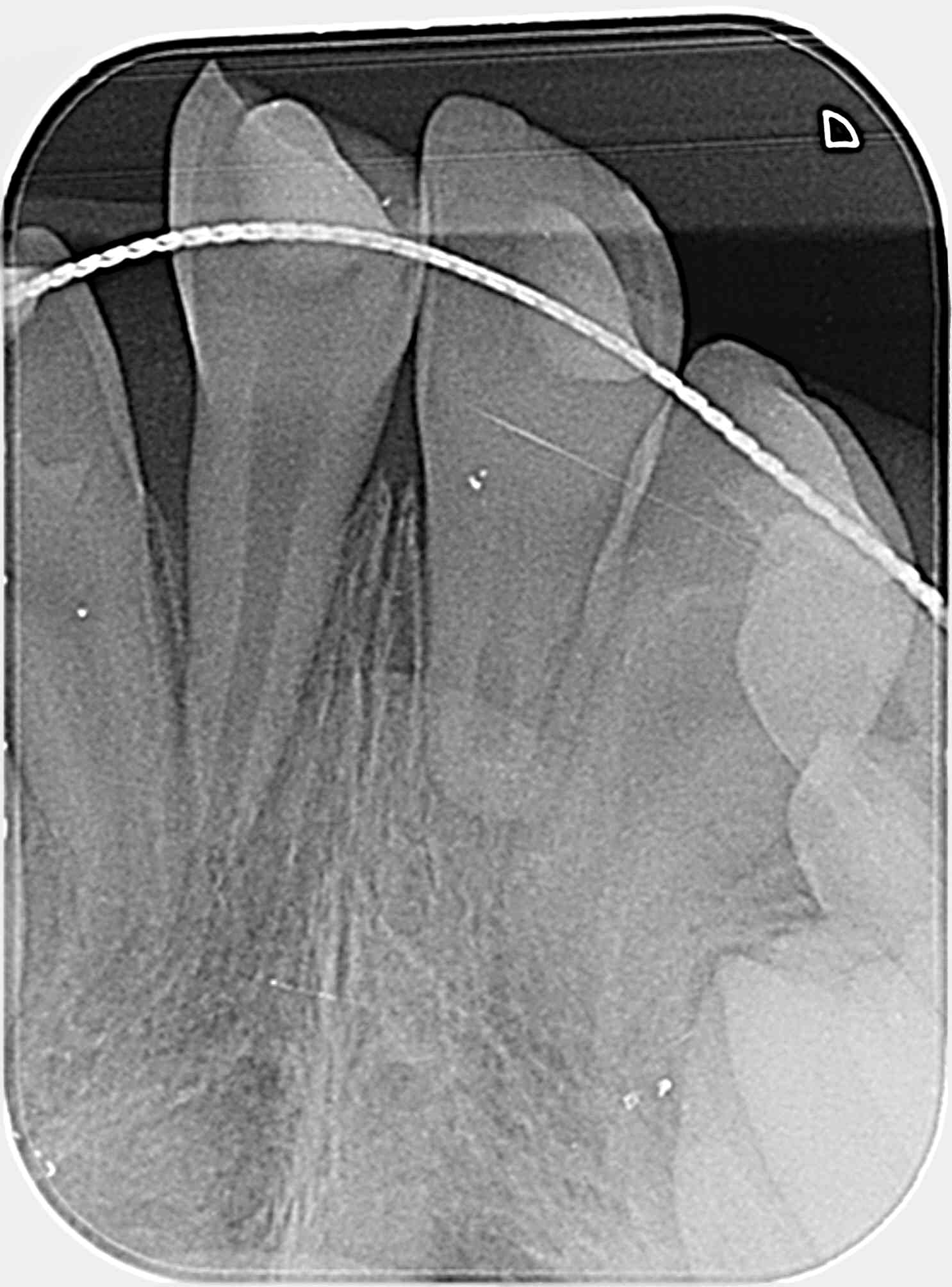 suite à l'expulsion totale et la mise en place tardive de 11.21 en urgence , la radio de contrôle 3 mois après, montre des signes de résorption avec un pronostic sombre , dans le cadre d'une cl 2.1.